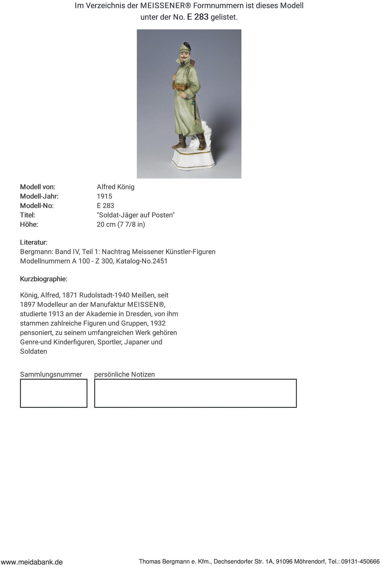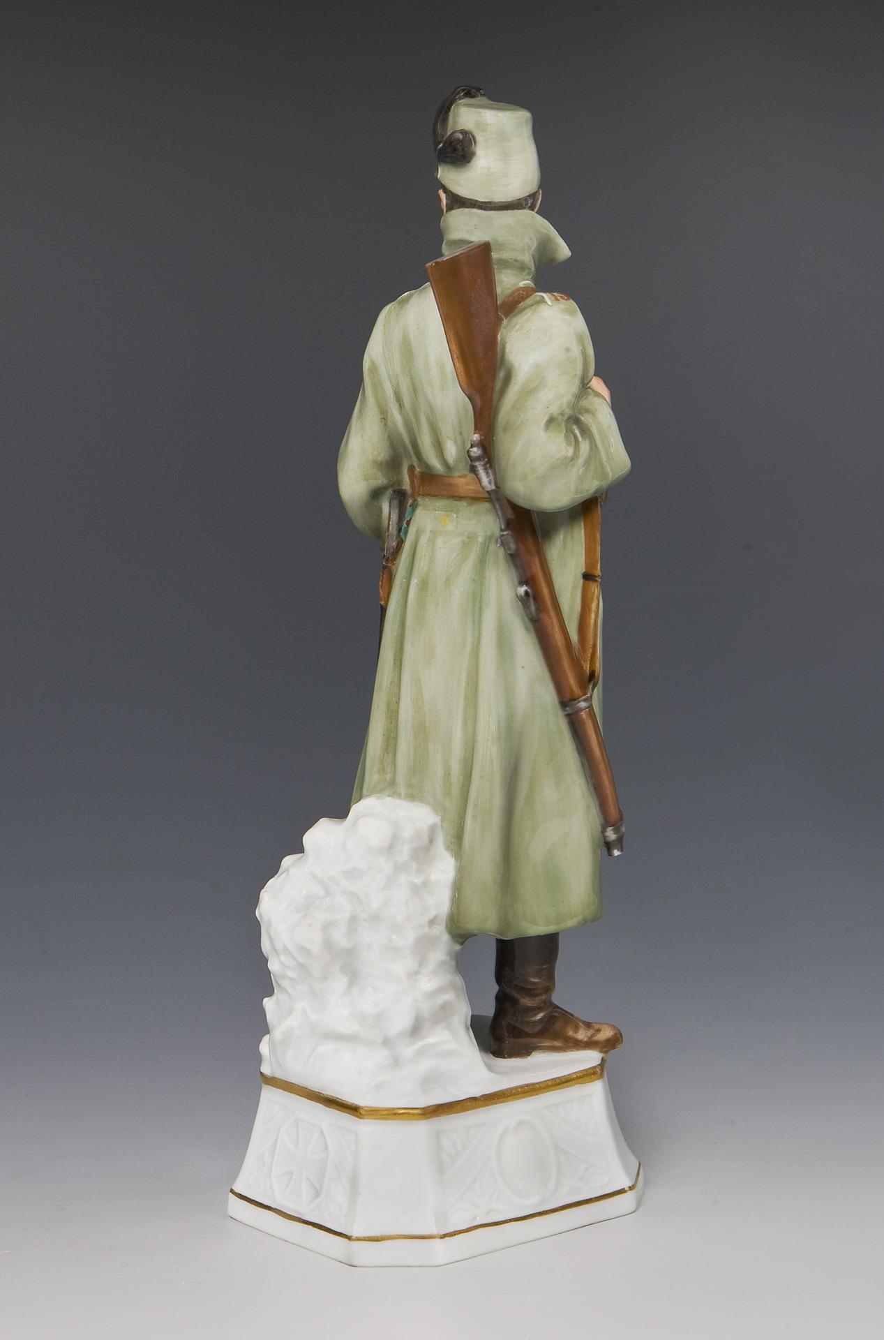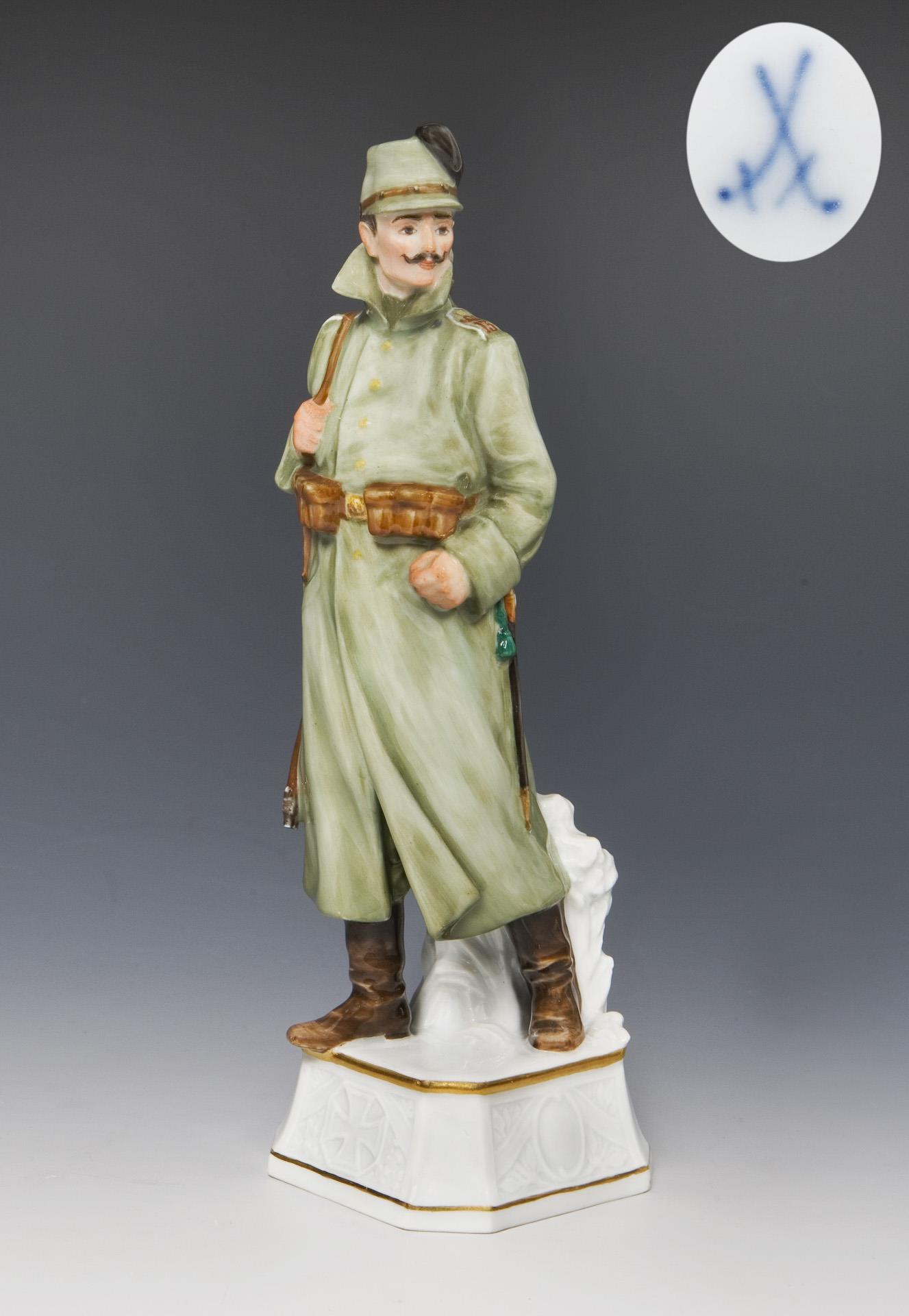 Seltene Jugendstil-Figur: Soldat-Jäger auf Posten. Meissen.