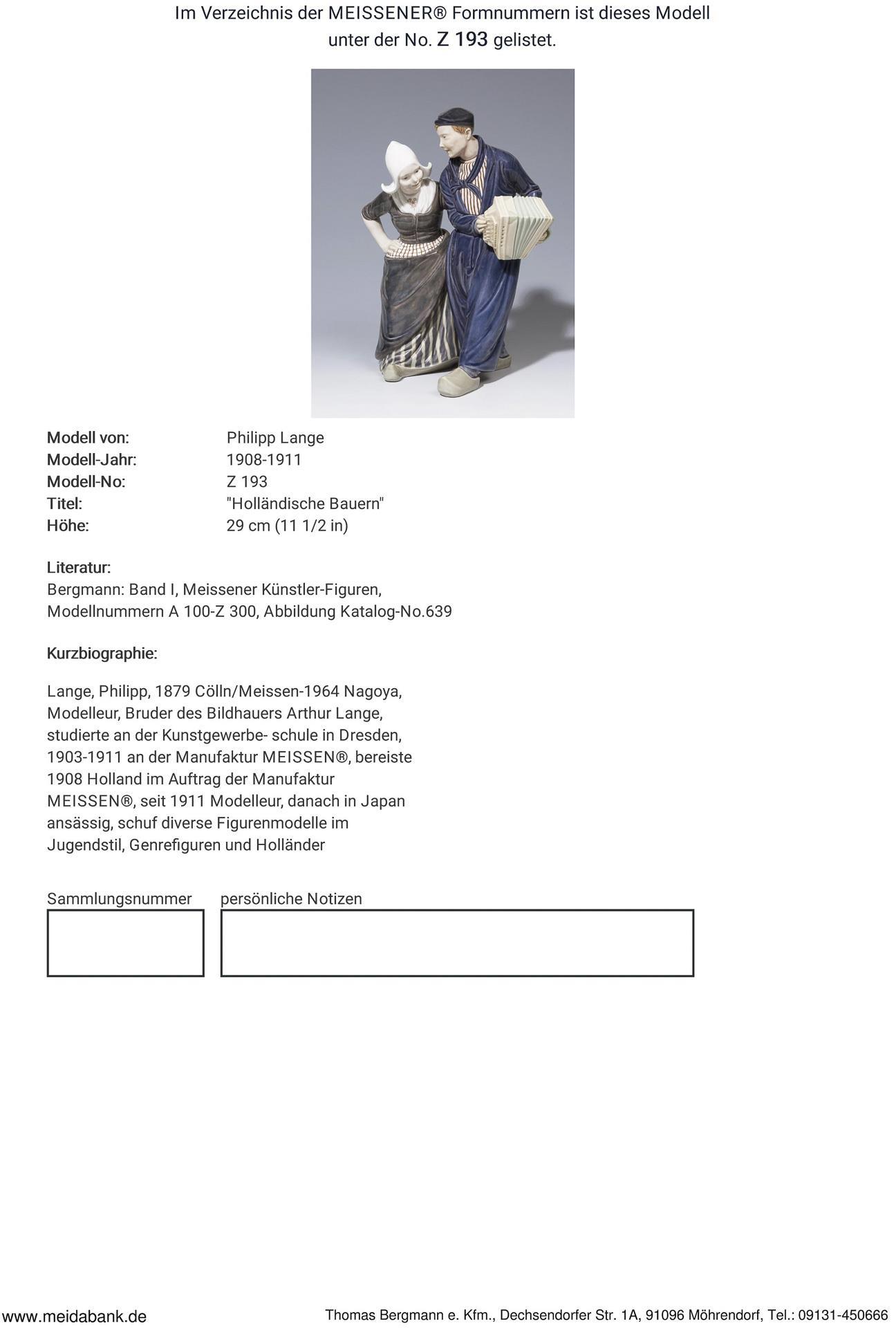 * Lange, Philipp: Modelleur, Bruder des Bildhauers Arthur Lange, studierte an der Kunstgewerbeschule in Dresden. 1903-1911 an der Manufaktur Meissen, bereiste im Auftrag der Manufaktur Holland, nach 1911 in Japan ansässig. Schuf diverse Figuren und Gruppen im Jugendstil.