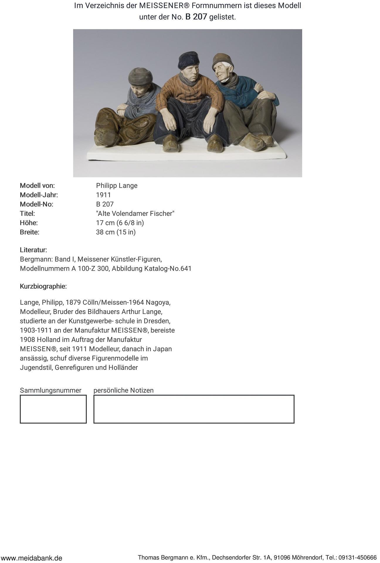 Ausformung 1910. Modell-Jahr: 1911, Modell-Nr. B 207. Modell von. LANGE, Philipp(1879 Cölln - 1964 Nagoya)