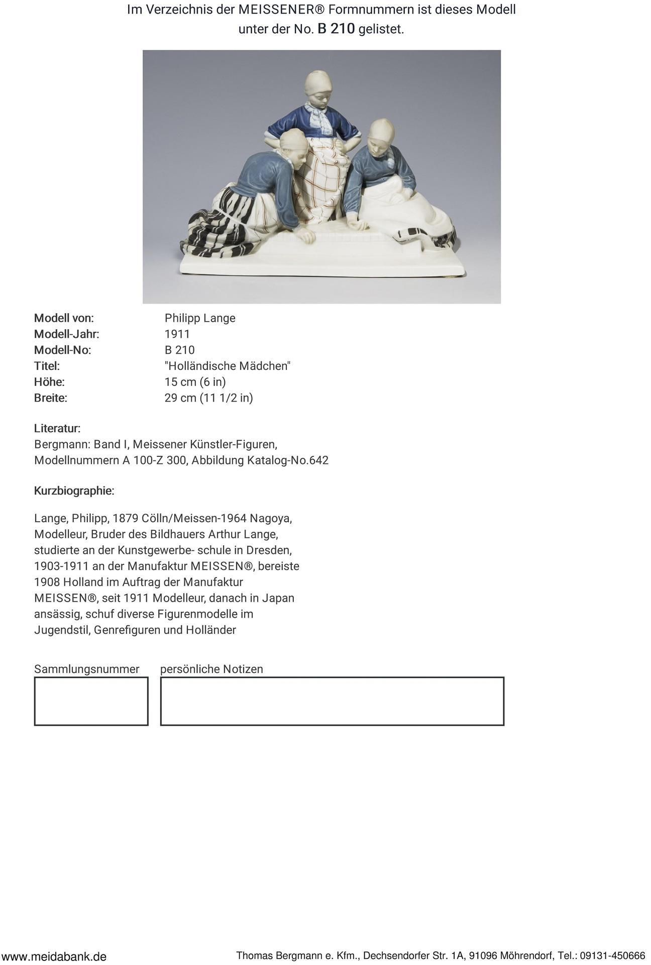Ausformung 1911-1923. Modell-Jahr: 1911, Modell-Nr. B 210. Modell von. LANGE, Philipp(1879 Cölln - 1964 Nagoya)