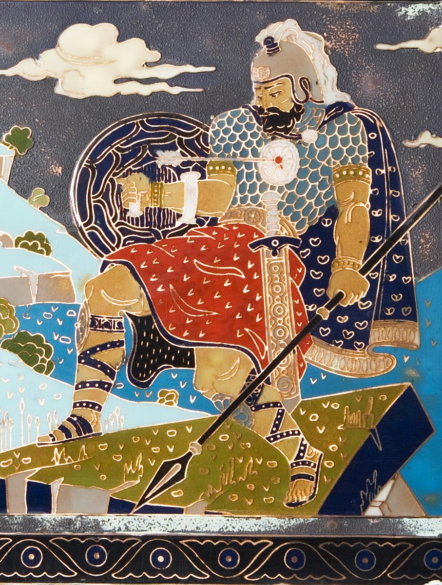 Russische Email-Bildplatte: "Historische Krieger".