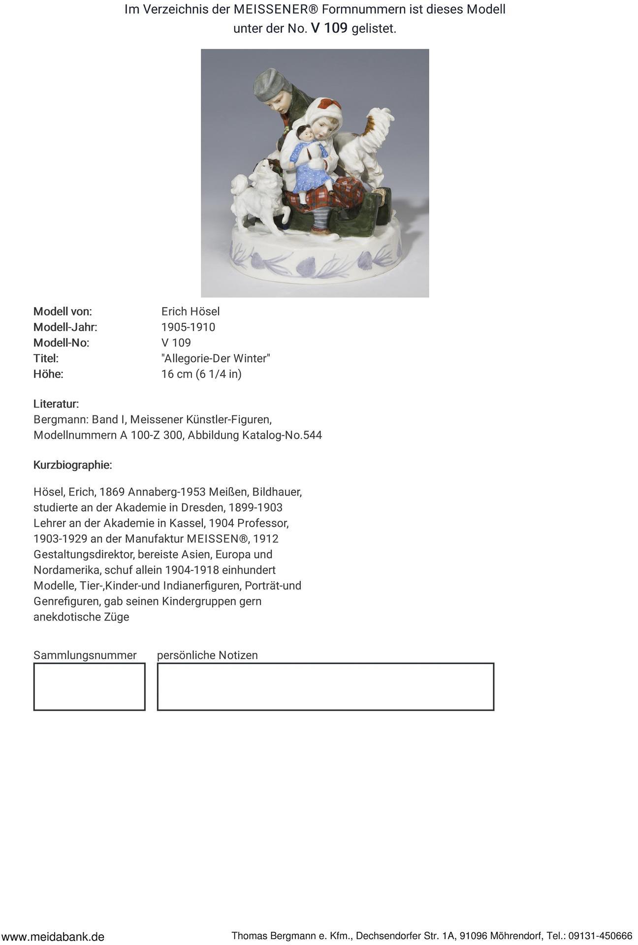 Ausformung 1910. Modell-Jahr: 1905-1910, Modell-Nr. V 109. Modell von. HÖSEL, Erich(1869 Annaberg - 1953 Meißen)
