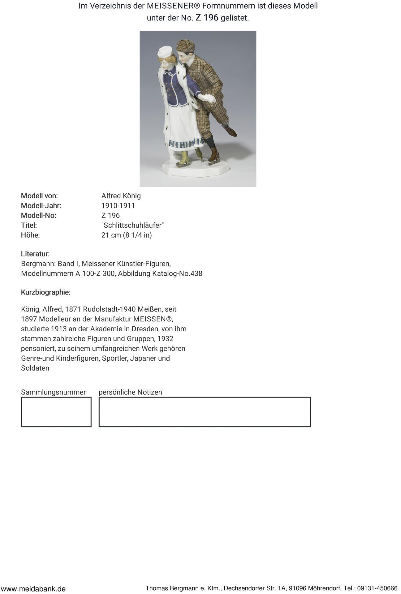 Ausformung 1910-1923. Modell-Jahr: 1910-1911, Modell-Nr. Z 196 (falsche Modell-Nr. Z 186 eingeritzt). Modell von. KÖNIG, Alfred(1871 Rudolstadt - 1940 Meißen)