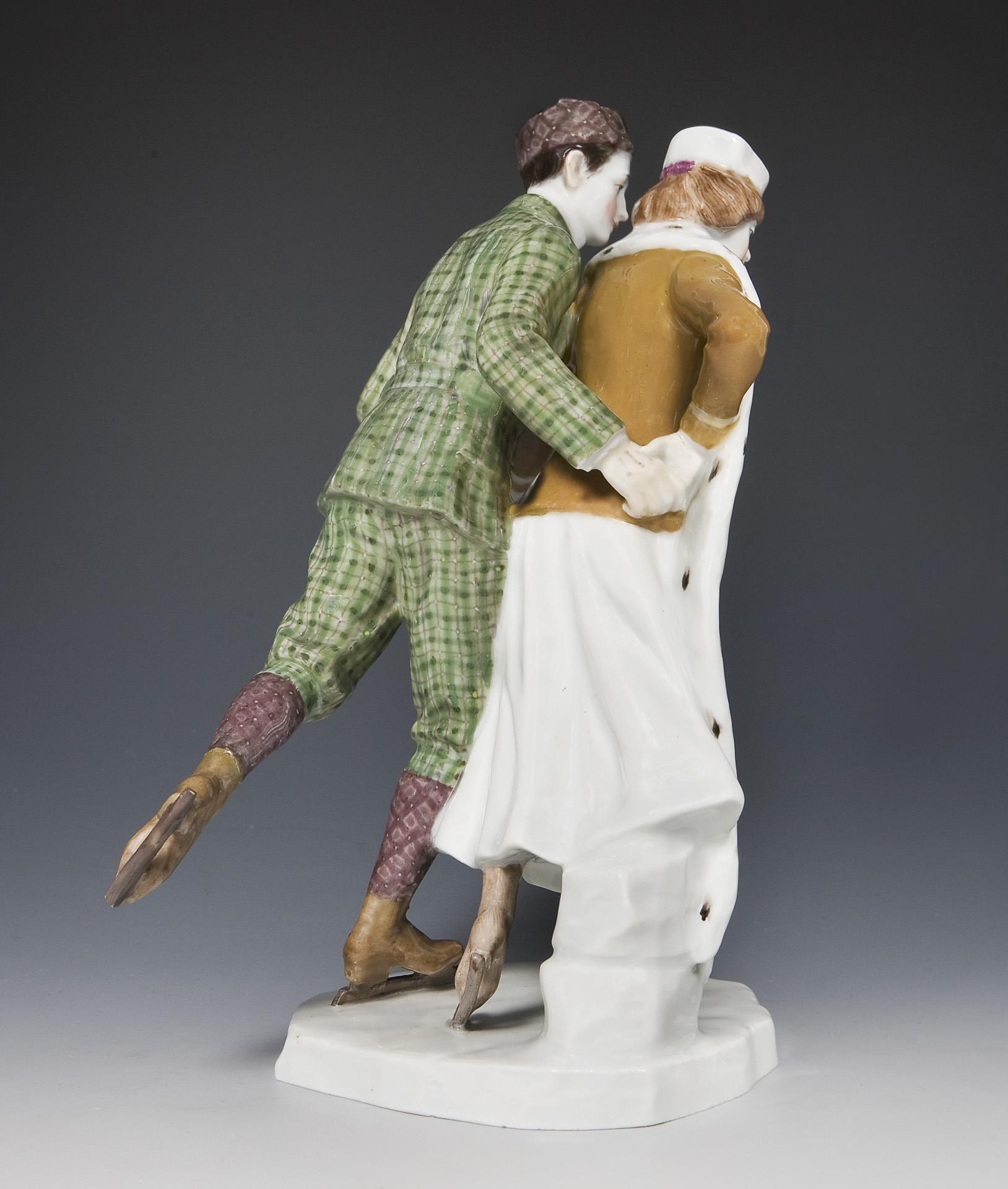 Jugendstil-Figurengruppe: Schlittschuhläufer. Meissen.