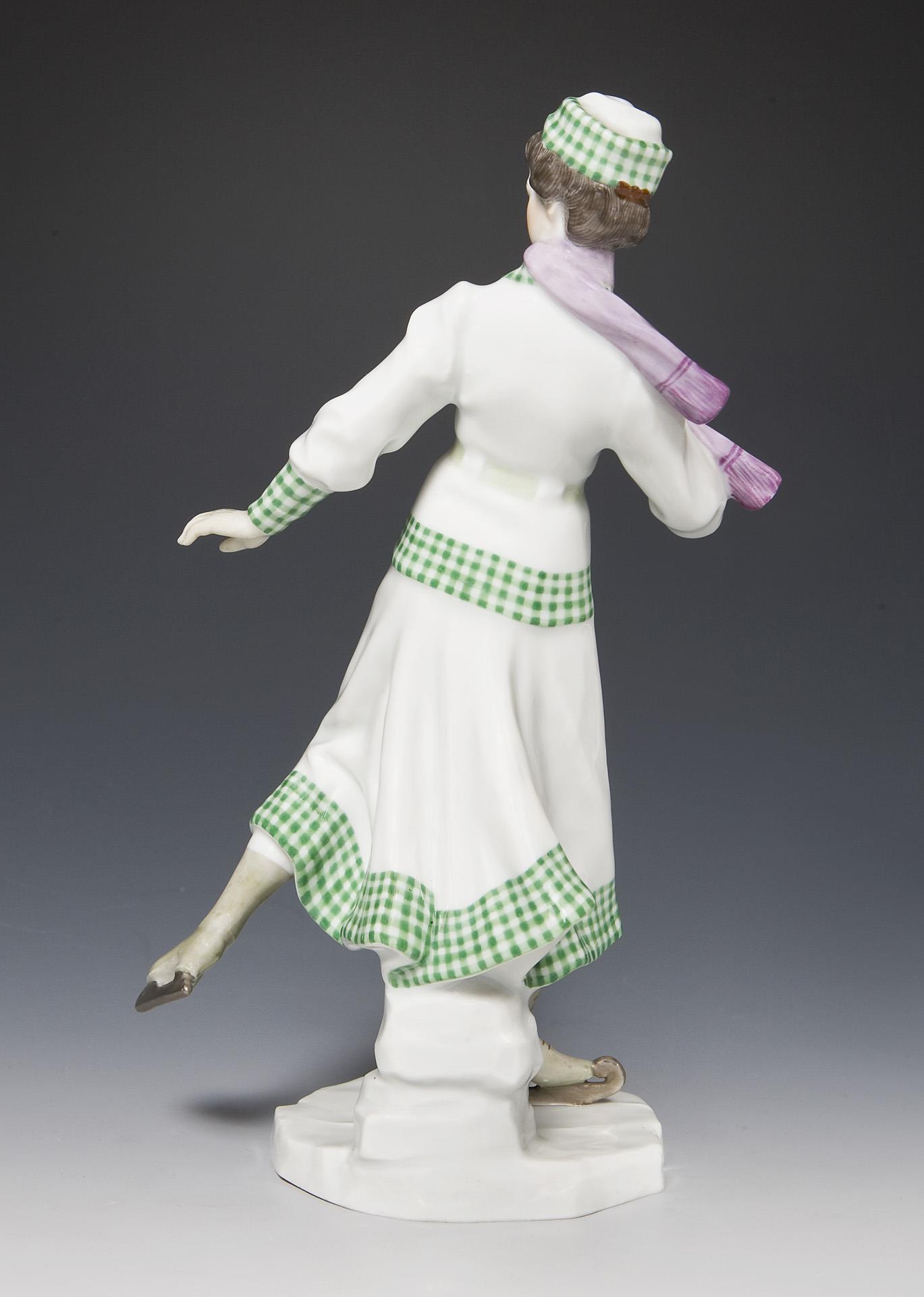 Pendant zu Modell-Nr. E 295 "Schlittschuhläufer", farbig bemalt. Pressmarken, Malermarke, Schwertermarke. Sockelrand kaum erkennbar minimal bestoßen.