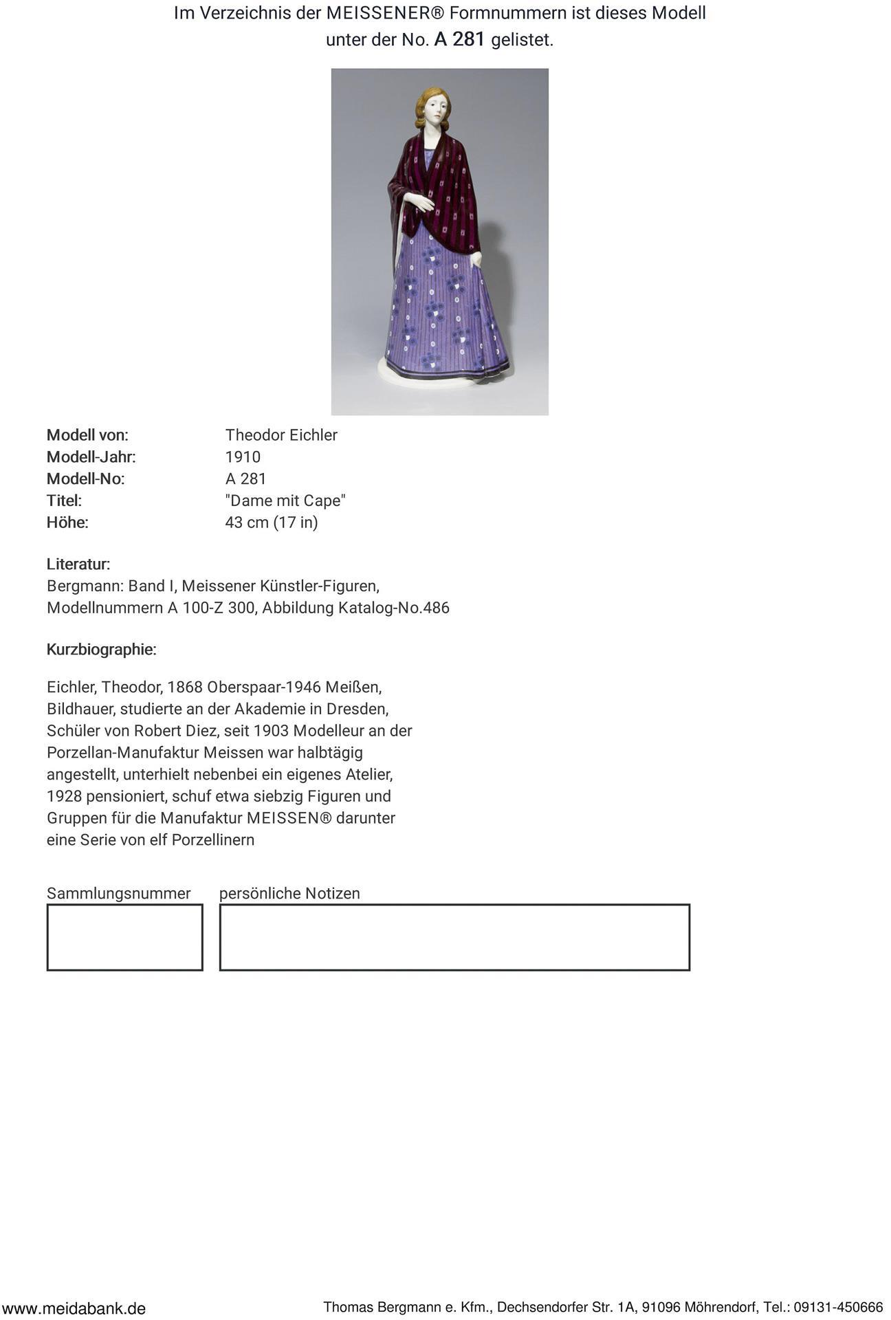 Ausformung 1910-1923. Modell-Jahr: 1910, Modell-Nr. A 281. Modell von. EICHLER, Theodor(1868 Oberspaar - 1946 Meißen)