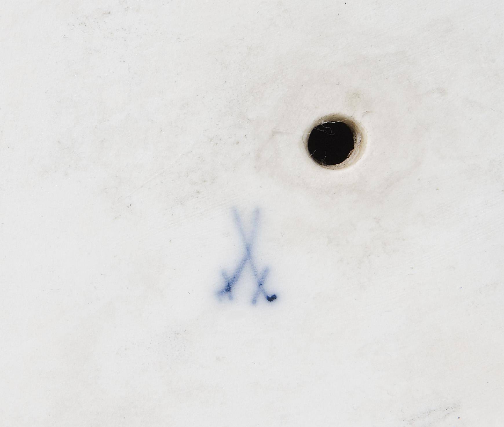 Farbig bemalt, Haarband gold staffiert. Unglasierter Boden, Ritzmarke, Pressmarke, Schwertermarke. Sockelrand minimal bestoßen.