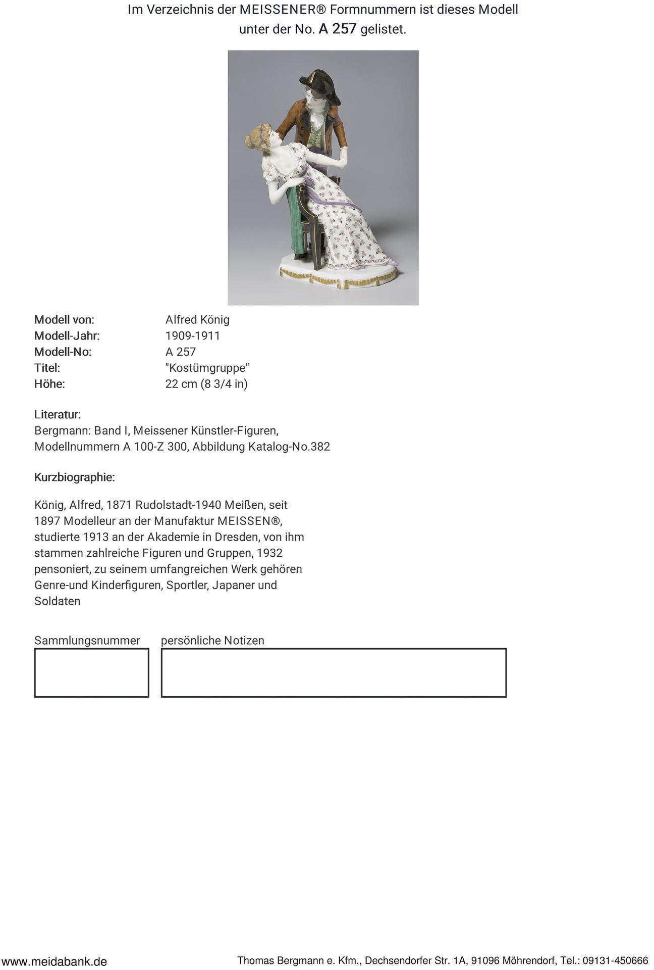 Ausformung 1909-1923. Modell-Jahr: 1909-1911, Modell-Nr. A 257. Modell von. KÖNIG, Alfred(1871 Rudolstadt - 1940 Meißen)