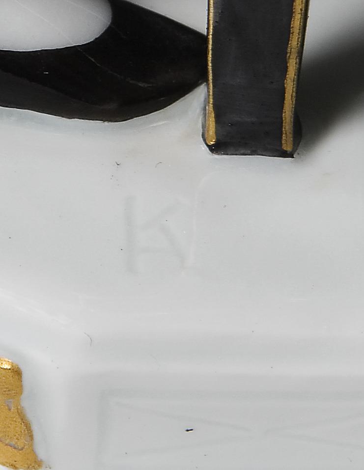 Farbig bemalt, gold staffiert. Ritzmarke, Pressmarke, Malermarke, Schwertermarke, Künstler-Signet. Etwa ein Drittel der Gruppe wurde fachmännisch restauriert, der Zustand vor der Restaurierung ist uns nicht bekannt.