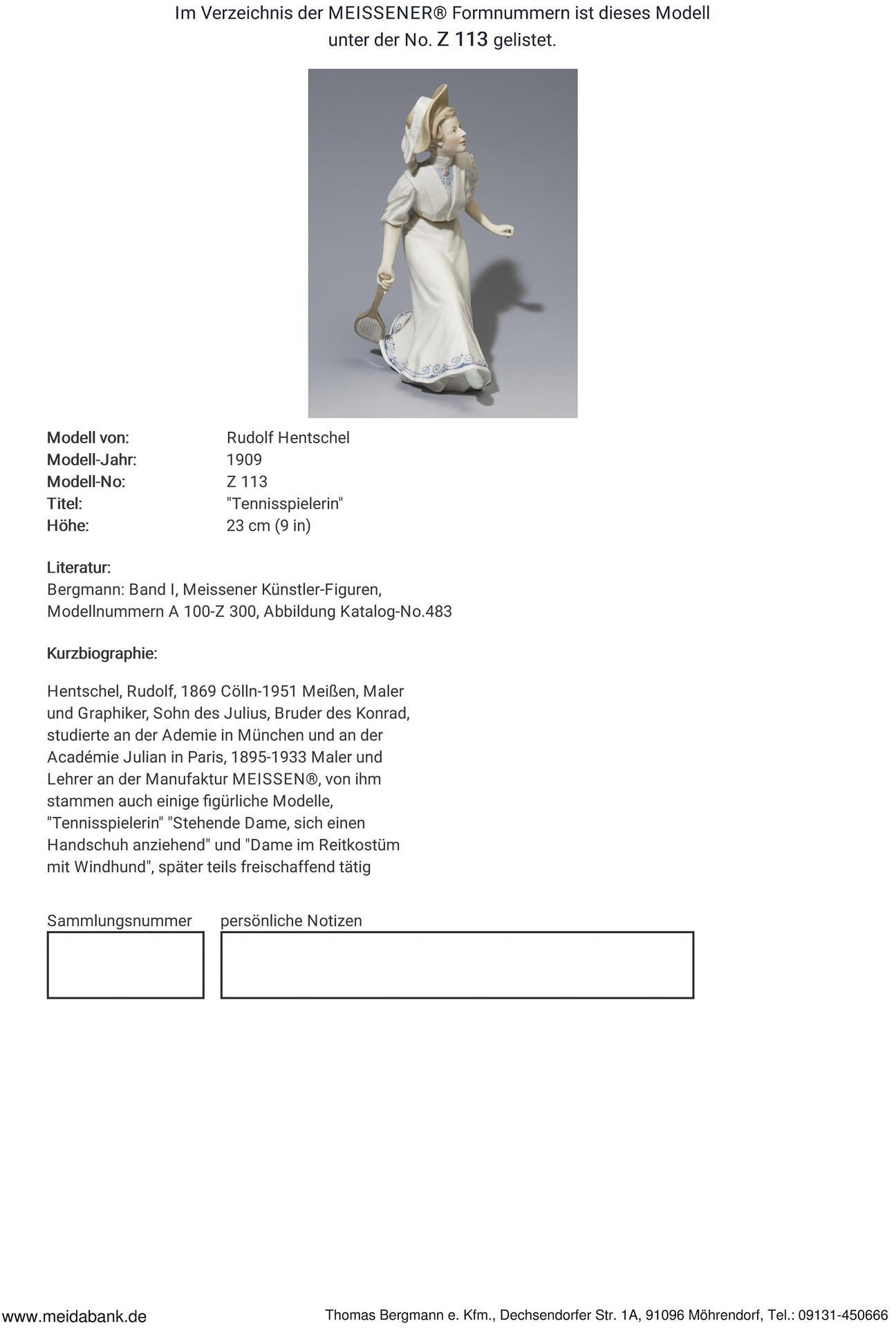 Ausformung 1909-1923. Modell-Jahr: 1909, Modell-Nr. Z 113. Modell von. HENTSCHEL, Rudolf(1869 Cölln - 1951 Meißen)