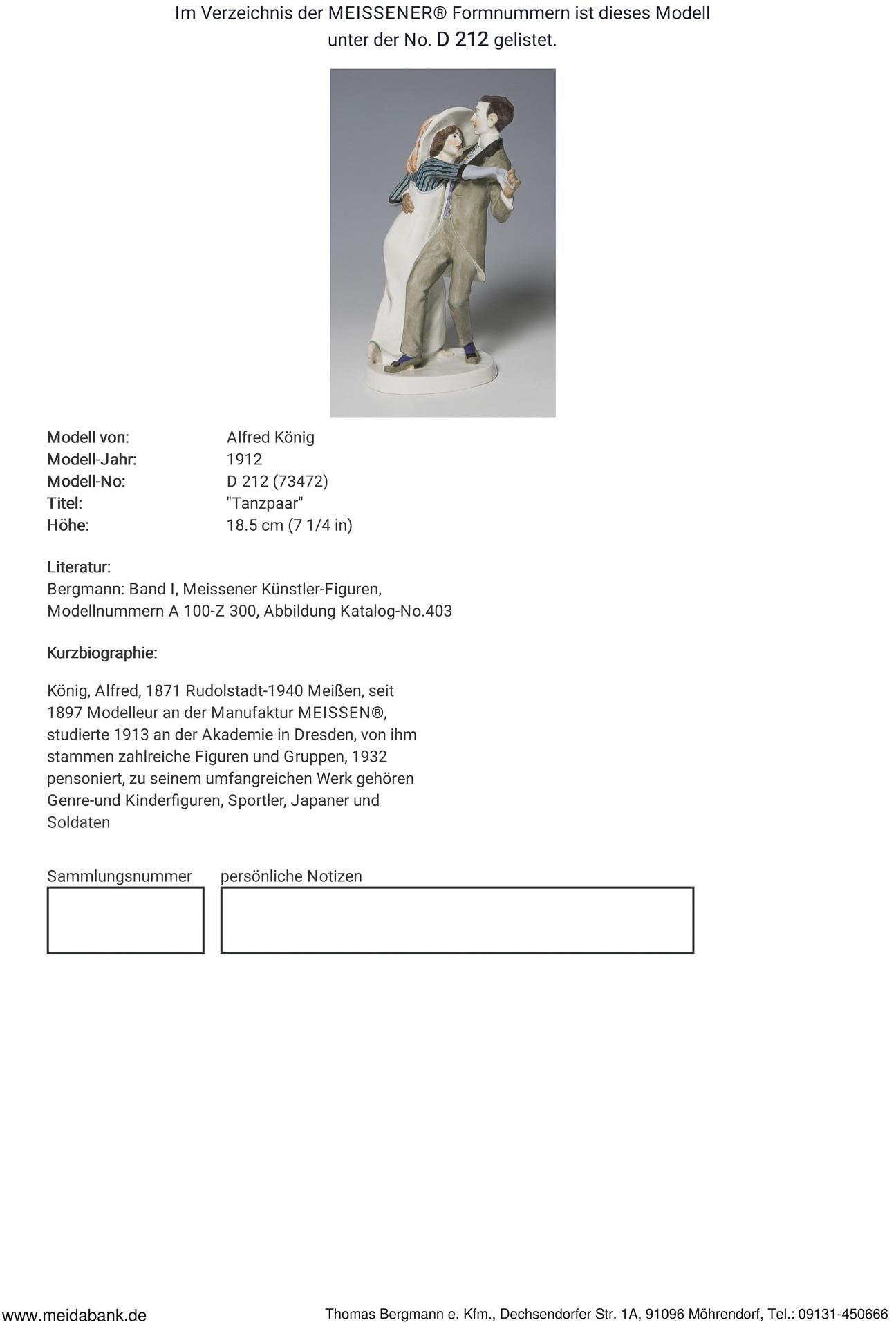 Ausformung 1912-1923. Modell-Jahr: 1912, Modell-Nr. D 212 (neue Form-Nr. 73472). Modell von. KÖNIG, Alfred(1871 Rudolstadt - 1940 Meißen)