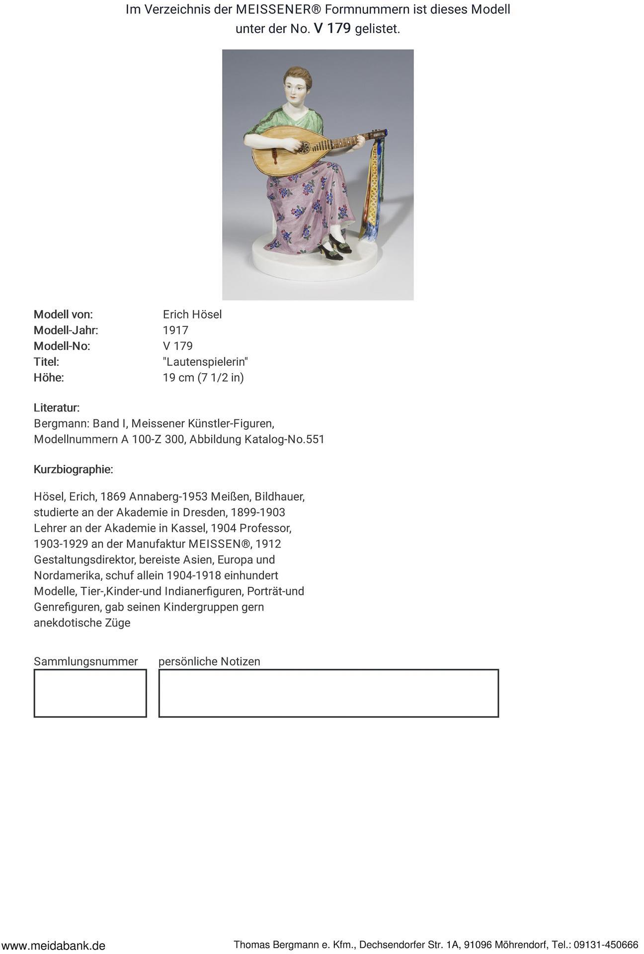 Ausformung 1917-1923. Modell-Jahr: 1917, Modell-Nr. V 179. Modell von. HÖSEL, Erich(1869 Annaberg - 1953 Meißen)