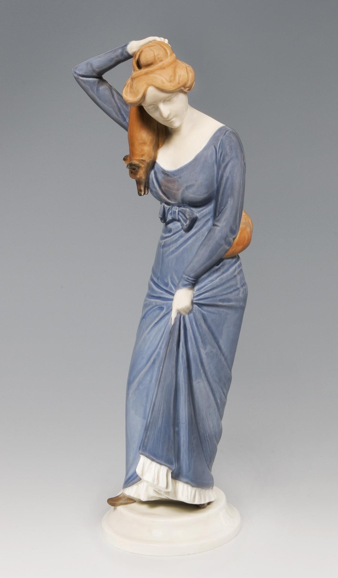 Jugendstil-Figur: Dame mit Pelzboa. Meissen.