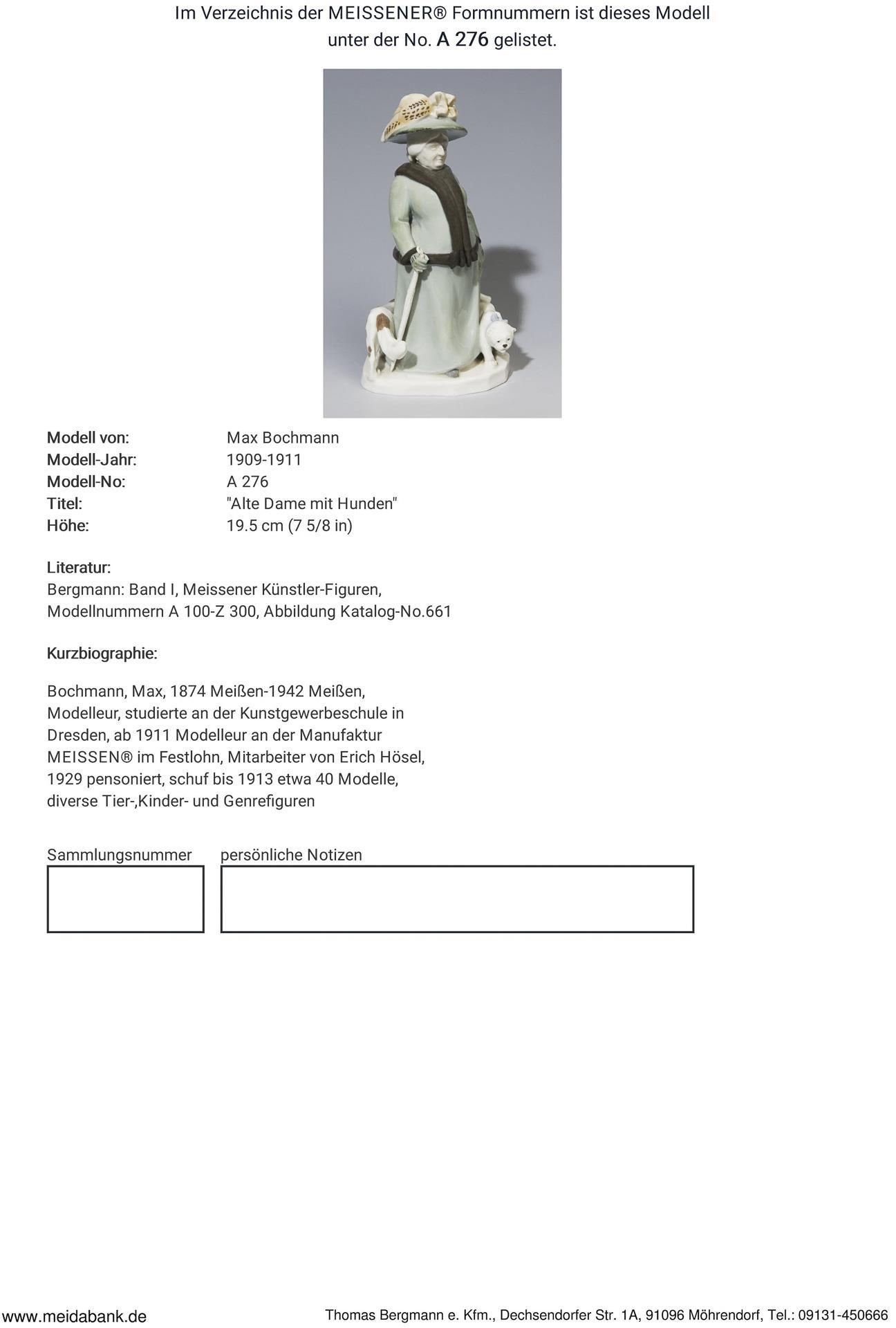 Ausformung 1909-1923. Modell-Jahr: 1909-1911, Modell-Nr. A 276. Modell von. BOCHMANN, Max(1874 Meißen - 1942 Meißen)