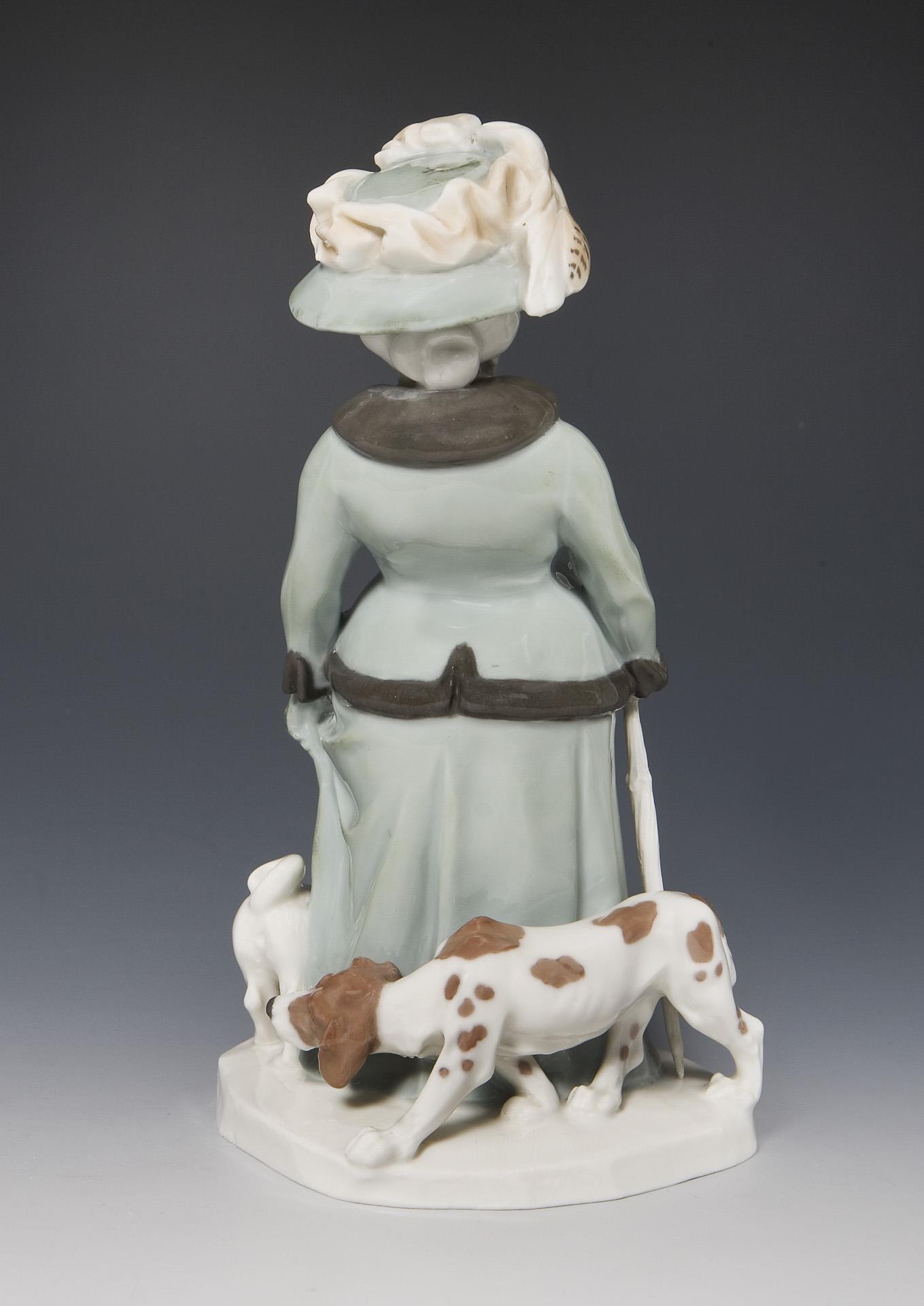 Jugendstil-Figur: Alte Dame mit Hunden. Meissen.