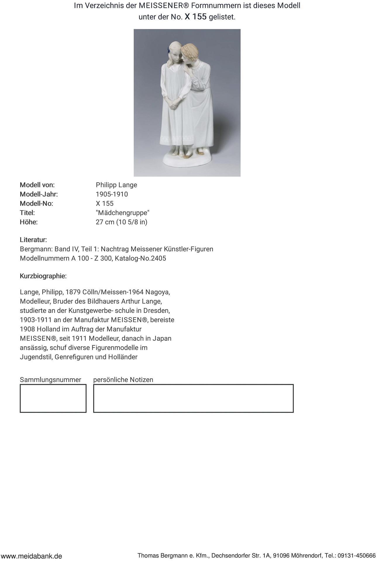 Ausformung 1905-1923. Modell-Jahr: 1905-1910, Modell-Nr. X 155. Modell von. LANGE, Philipp(1879 Cölln - 1964 Nagoya)