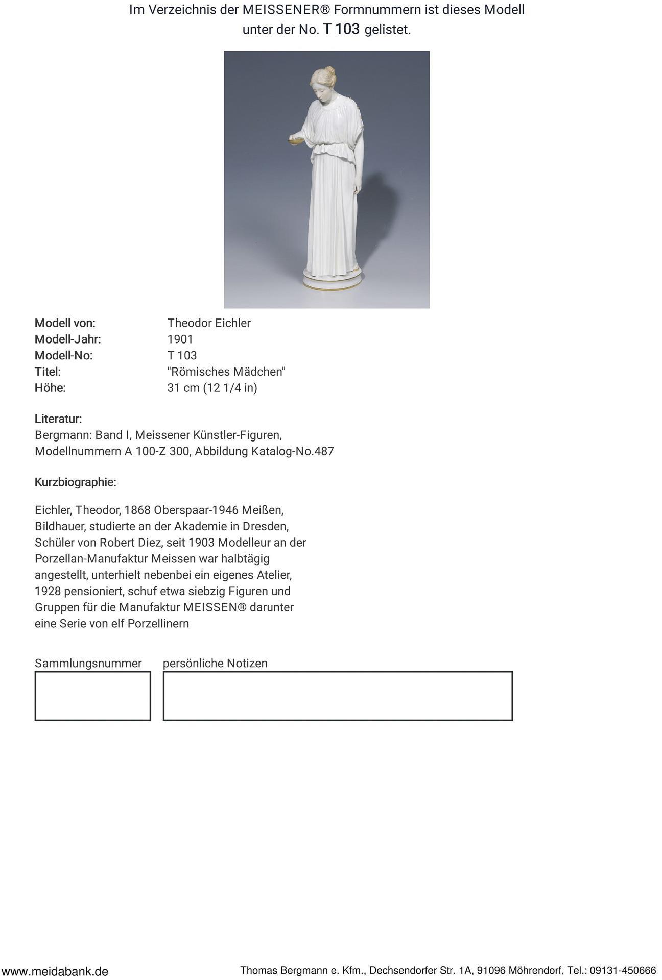 Ausformung 1901-1923. Modell-Jahr: 1901, Modell-Nr. T 103. Modell von. EICHLER, Theodor(1868 Oberspaar - 1946 Meißen)