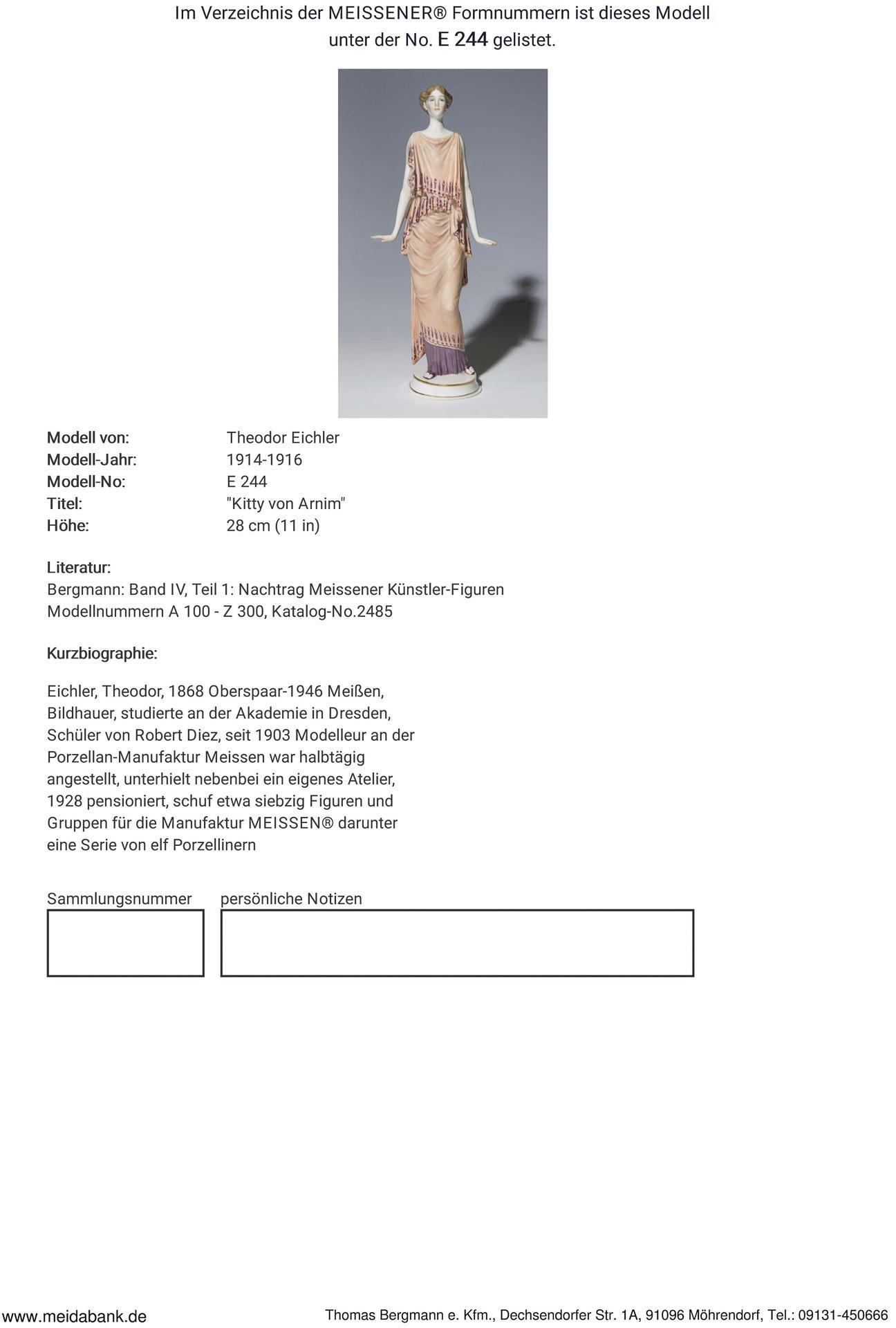 Ausformung 1914-1923. Modell-Jahr: 1914-1916, Modell-Nr. E 244. Modell von. EICHLER, Theodor(1868 Oberspaar - 1946 Meißen)