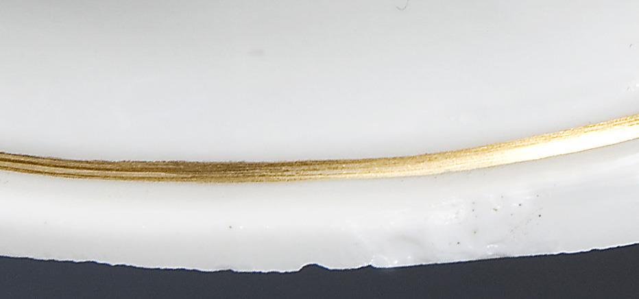Farbig bemalt, gold staffiert. Ritzmarke, Pressmarke, Schwertermarke, Künstler-Signet. Sockelrand leicht bestoßen.
