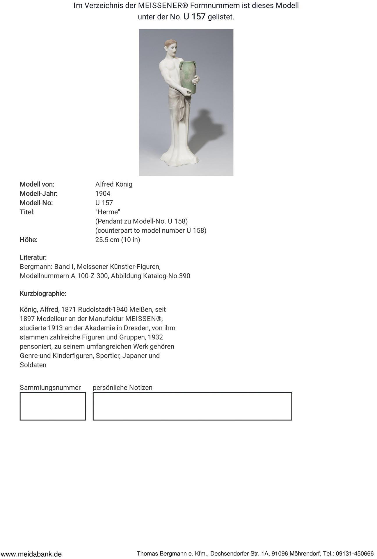 Ausformung 1910. Modell-Jahr: 1904, Modell-Nr. U 157. Modell von. KÖNIG, Alfred(1871 Rudolstadt - 1940 Meißen)
