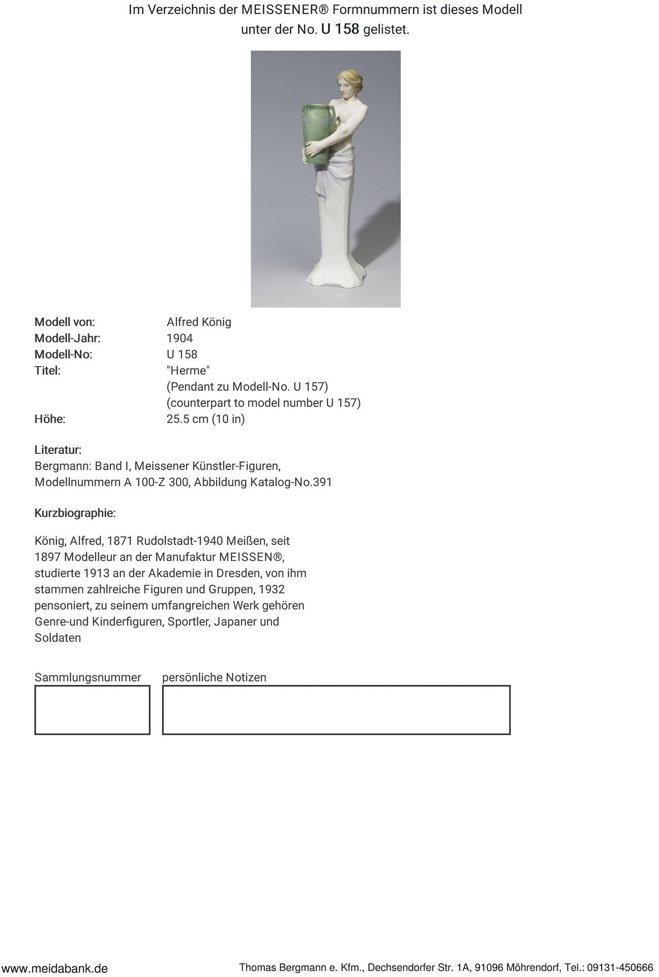 Ausformung 1910. Modell-Jahr: 1904, Modell-Nr. U 158. Modell von. KÖNIG, Alfred(1871 Rudolstadt - 1940 Meißen)