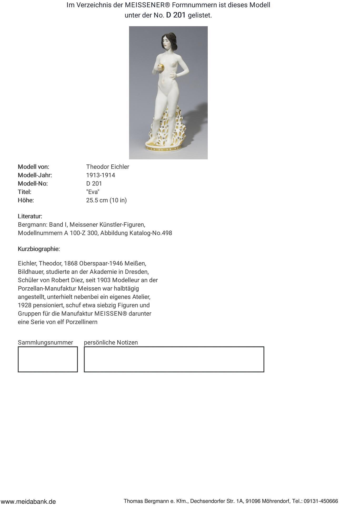 Ausformung 1913-1923. Modell-Jahr: 1913-1914, Modell-Nr. D 201. Modell von. EICHLER, Theodor(1868 Oberspaar - 1946 Meißen)