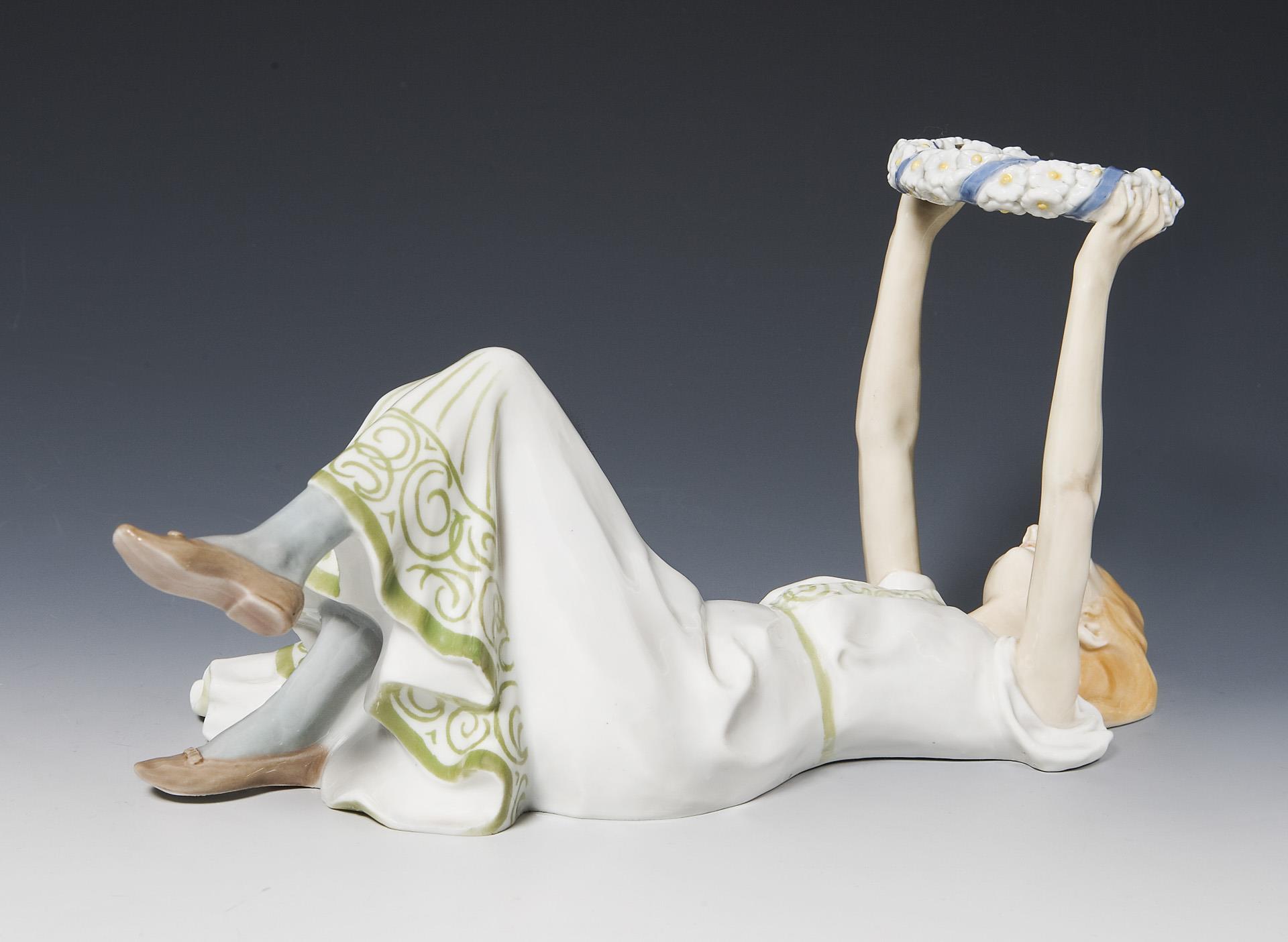 Jugendstil-Figur: Mädchen mit Blumenkranz. Meissen.