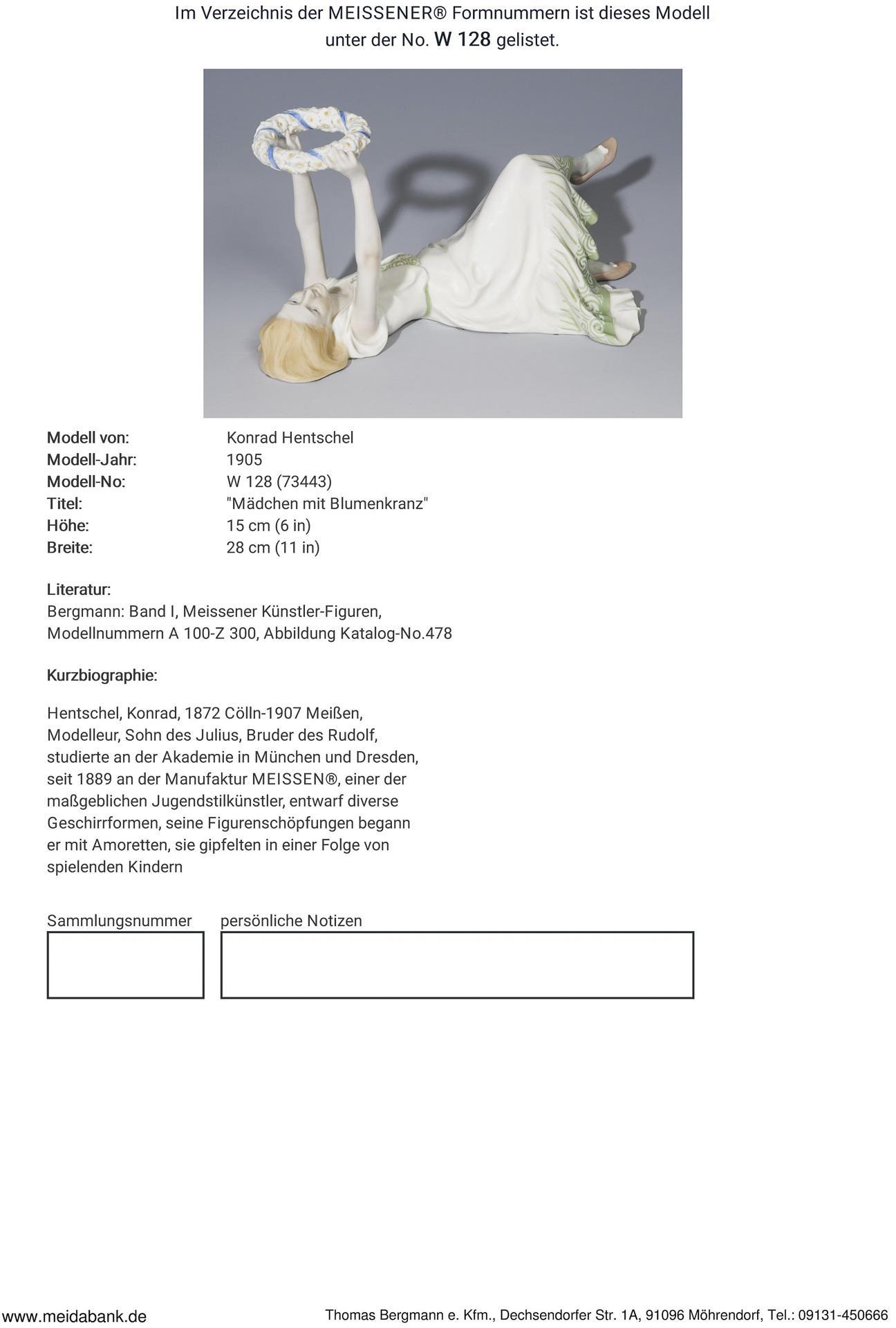 Ausformung 1905-1923. Modell-Jahr: 1905, Modell-Nr. W 128 (neue Form-Nr. 73443). Modell von. HENTSCHEL, Konrad(1872 Cölln - 1907 Meißen)