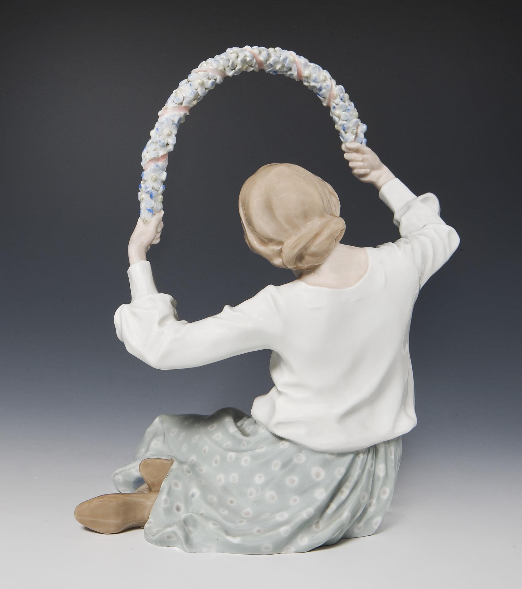 Jugendstil-Figur: Mädchen mit Blütenbogen. Meissen.