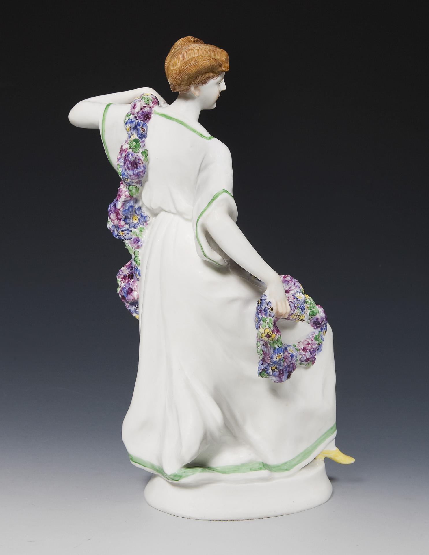 Seltene Jugendstil-Figur: Mädchen mit Blumengirlande. Meissen.