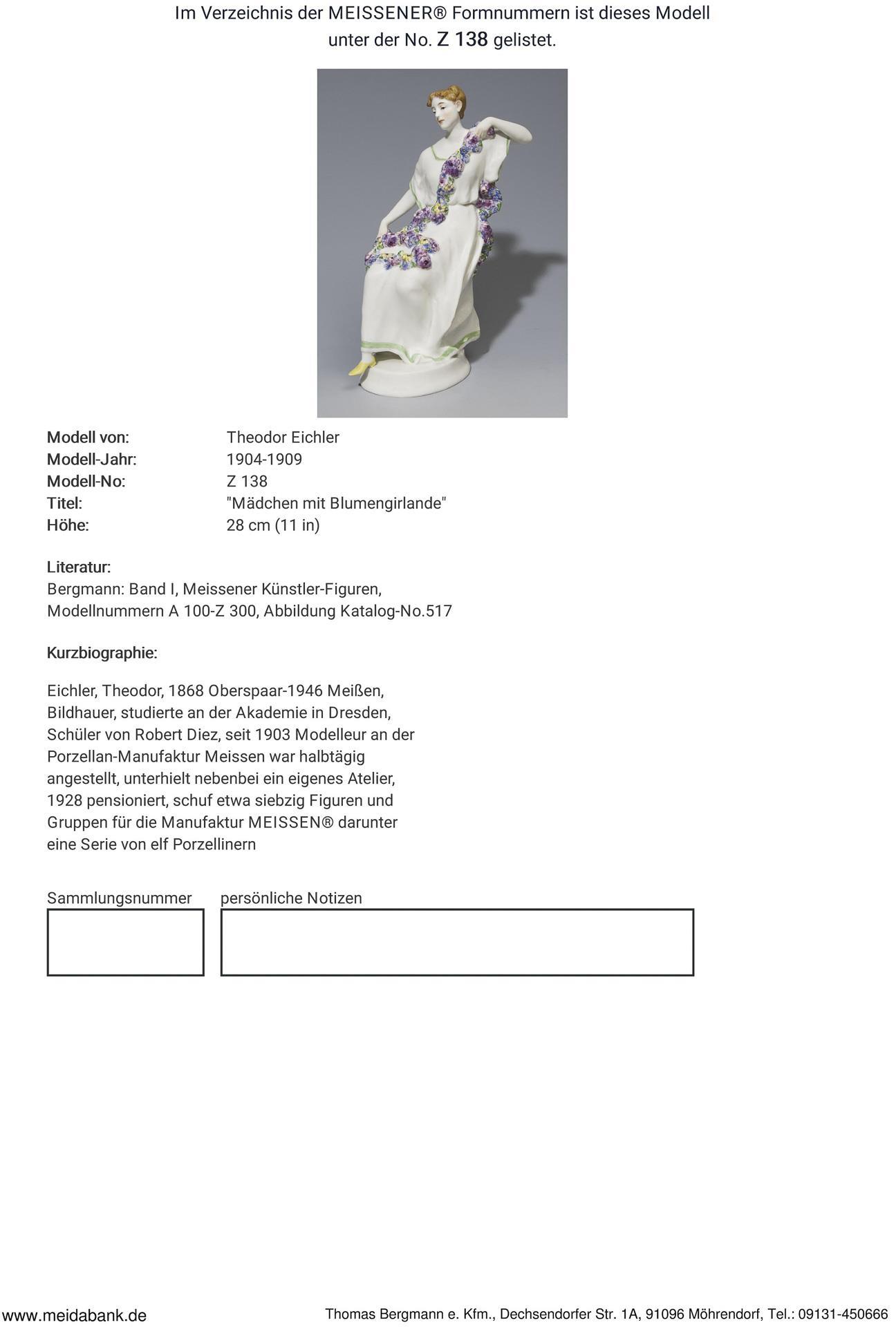 Ausformung 1904-1923. Modell-Jahr: 1904-1909, Modell-Nr. Z 138. Modell von. EICHLER, Theodor(1868 Oberspaar - 1946 Meißen)