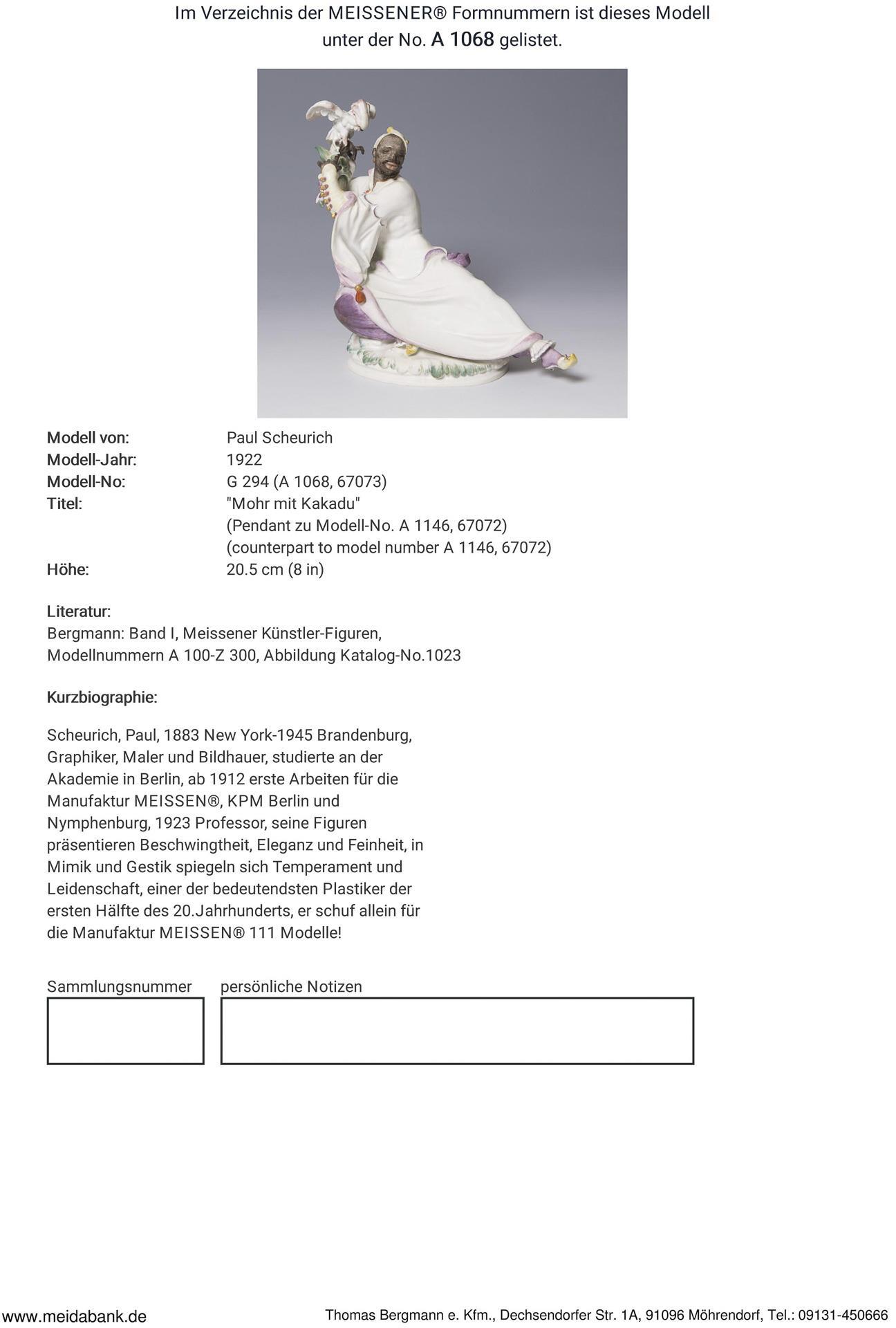 * Scheurich, Maler, Grafiker, Illustratior, Bildhauer, Modelleur, studierte an der Akademie in Berlin. Ab 1912 erste Arbeiten für die Manufaktur Meissen, KPM Berlin und Nymphenburg. 1924 Titular-Professor, seine Figuren präsentieren Beschwingtheit und Eleganz, in Mimik und Gestik spiegeln sich Temperament und Leidenschaft, einer der bedeutendsten Porzellanplatiker seiner Zeit * Meissen-Manufaktur-Preis: 9490,- Euro.
