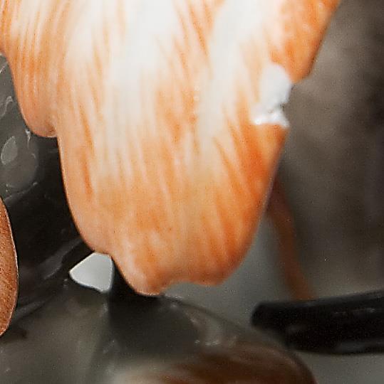 Pendant zu Modell-Nr. A 1146 (neue Form-Nr. 67072) "Orientalin mit Flöte". Farbig bemalt, gold staffiert. Ritzmarke, Pressmarke, Schwertermarke einmal gestrichen. Ein Flügel leicht, eine Bandspitze kaum erkennbar minimal bestoßen.