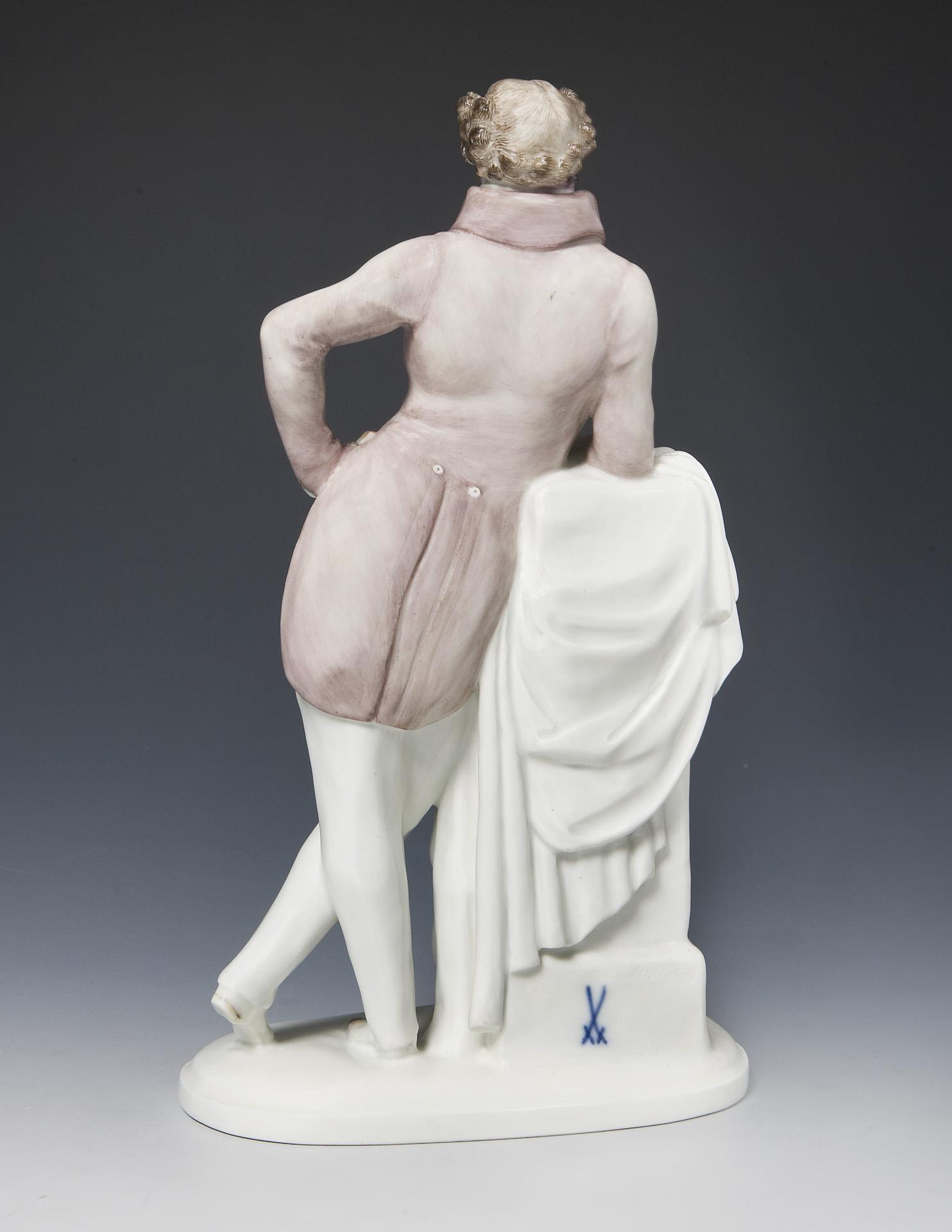 Pendant zu Modell-Nr. F 241 "Biedermeier-Dame", farbig bemalt. Unglasierter Boden, Ritzmarke, Pressmarke, Schwertermarke am Sockel, Künstler-Signet. Untere Viertel, Nase fachmännisch restauriert.
