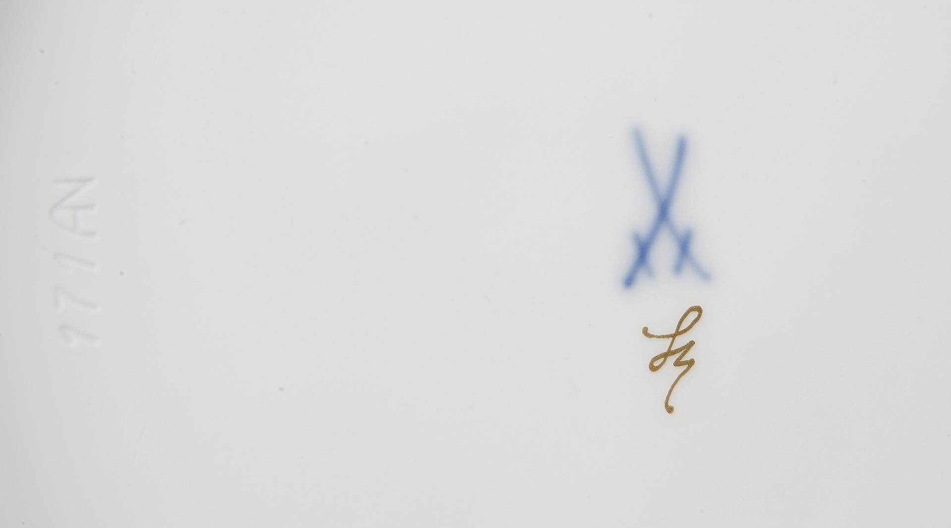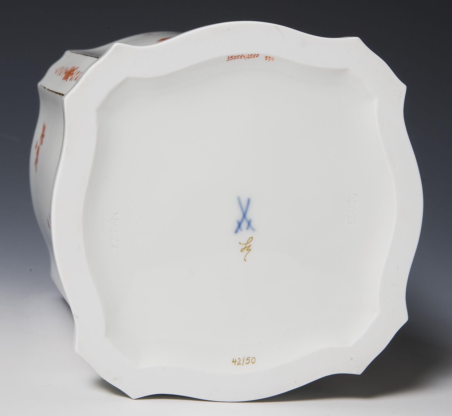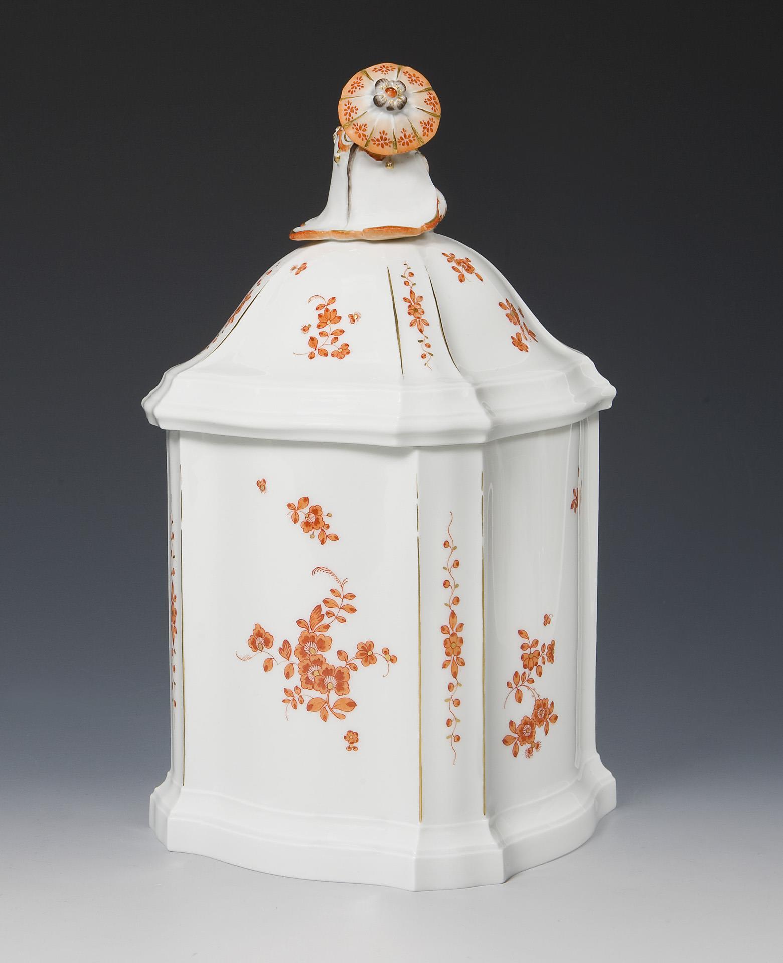 Edition Limitierte Meisterwerke, nummeriertes Exemplar: 42/50. Umlaufend Bemalung in Korallenrot und Gold, schwarz staffiert. Pressmarken, Malermarke, Schwertermarke, goldenes Sonder-Signet.