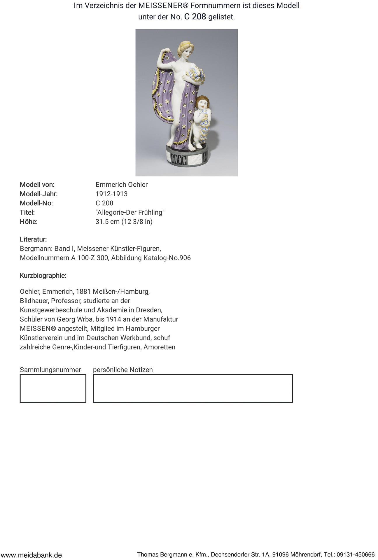 Ausformung 1912-1923. Modell-Jahr: 1912-1913, Modell-Nr. C 208. Modell von. OEHLER, Emmerich(1881 Meißen - 1982 Berlin)