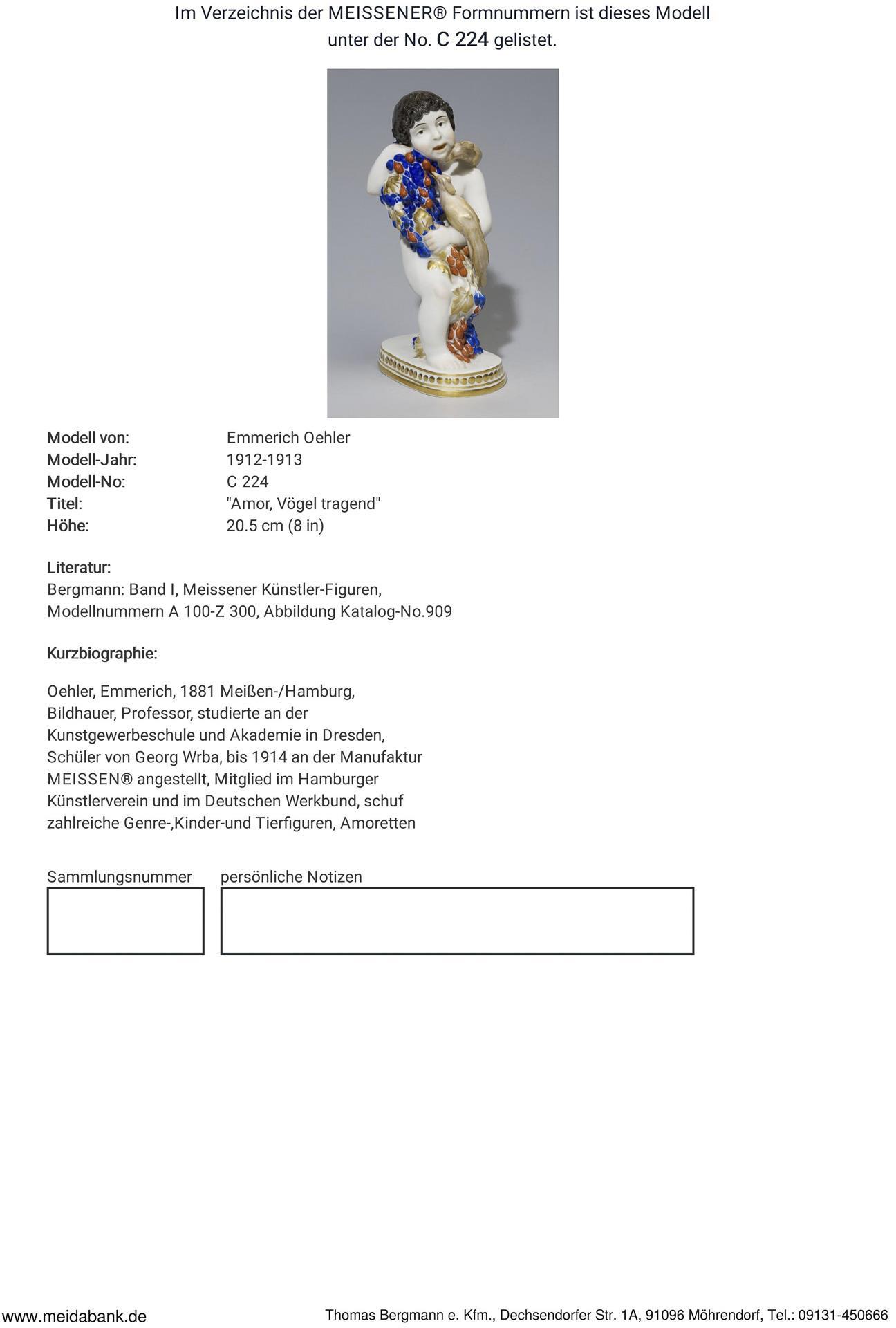 Ausformung 1912-1923. Modell-Jahr: 1912-1913, Modell-Nr. C 224. Modell von. OEHLER, Emmerich(1881 Meißen - 1982 Berlin)