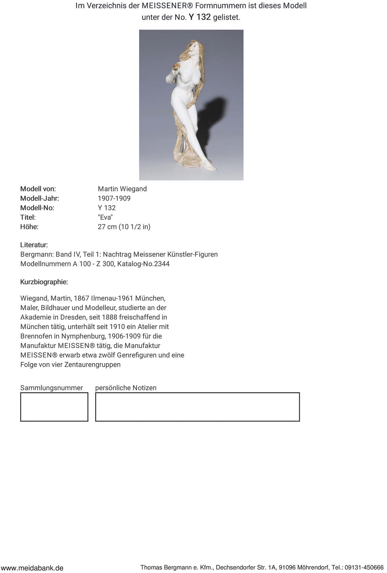 Ausformung 1907-1923. Modell-Jahr: 1907-1909, Modell-Nr. Y 132. Modell von. WIEGAND, Martin(1867 Ilmenau - 1961 München)