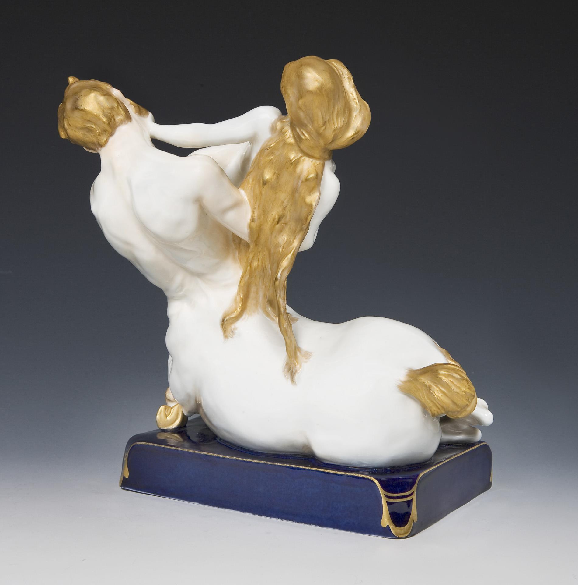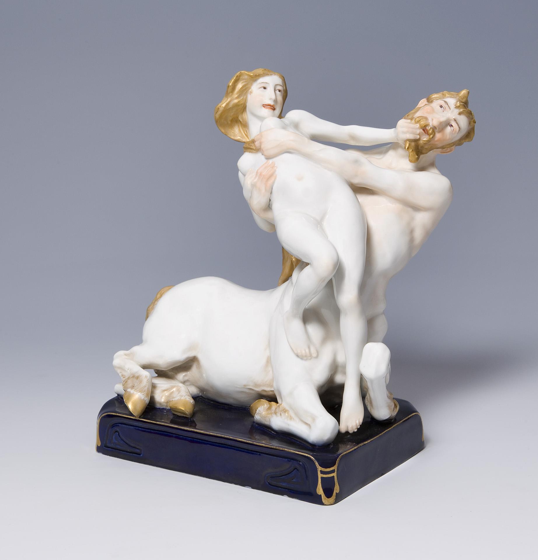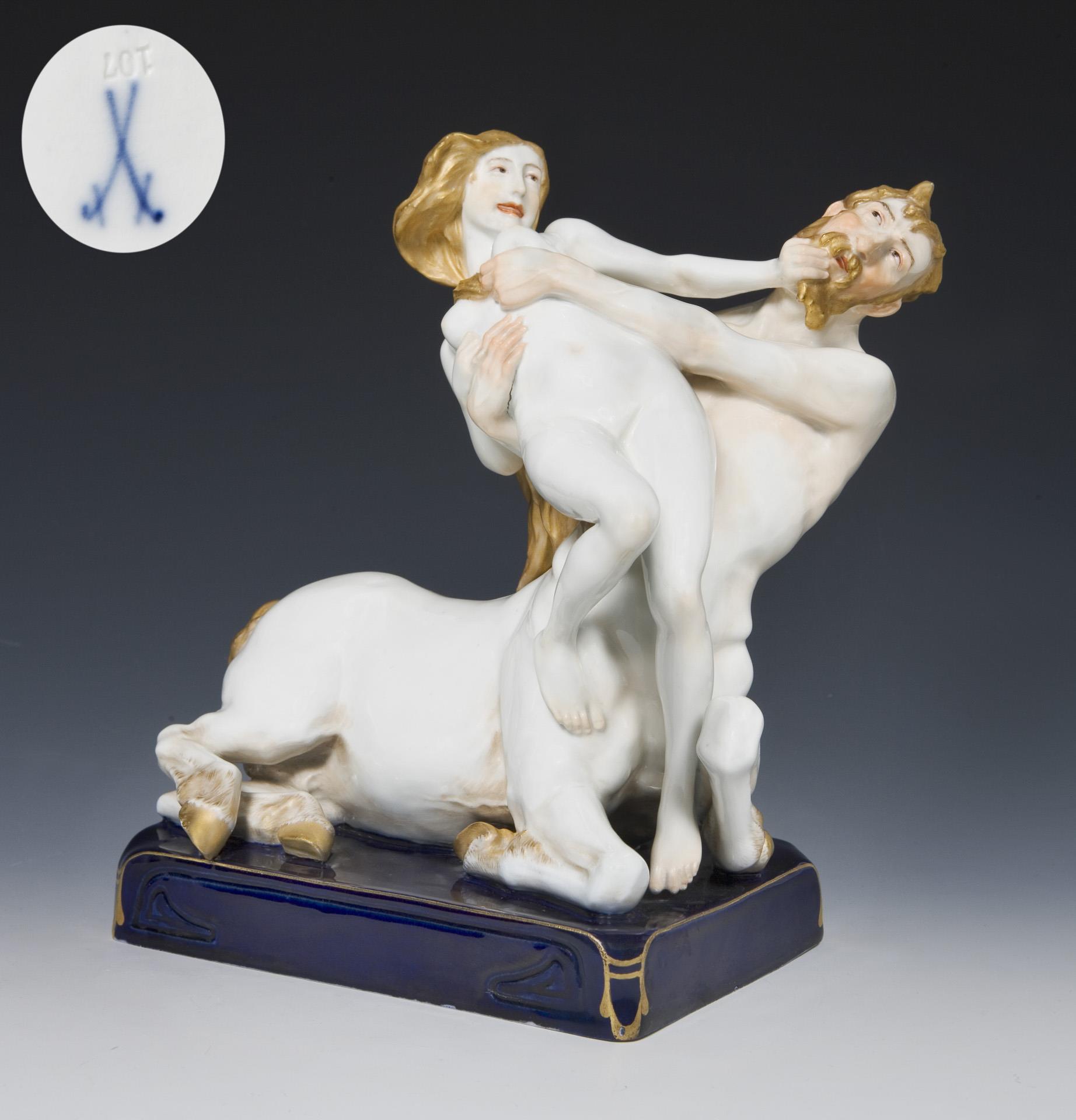 Seltene Jugendstil-Figurengruppe: Kentaur und Nymphe. Meissen.