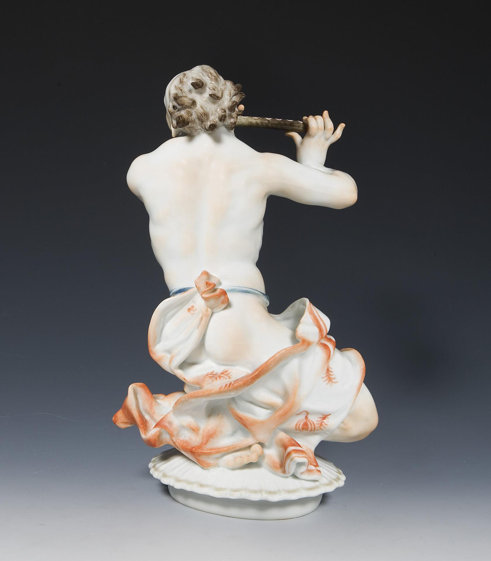 Aus einer Serie von 8 Figuren, farbig bemalt. Ritzmarke, Pressmarke, Malermarke, Schwertermarke mit Punkt, Künstler-Signet. Partiell kleine Brandrisse.