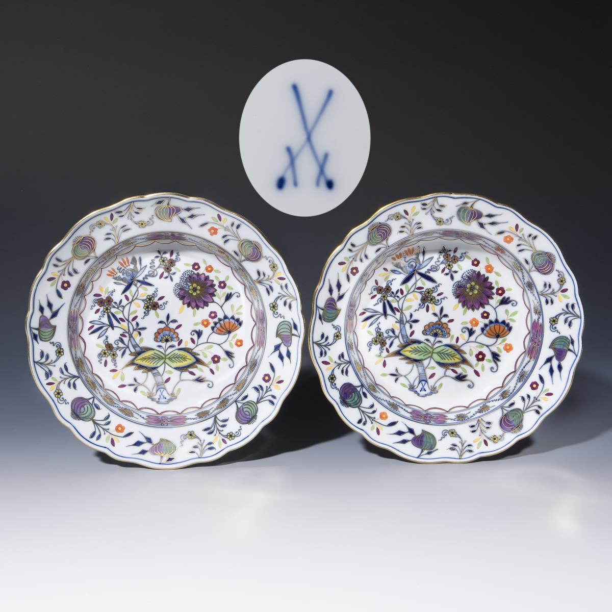 Paar Blaudekor-Suppenteller. Meissen.