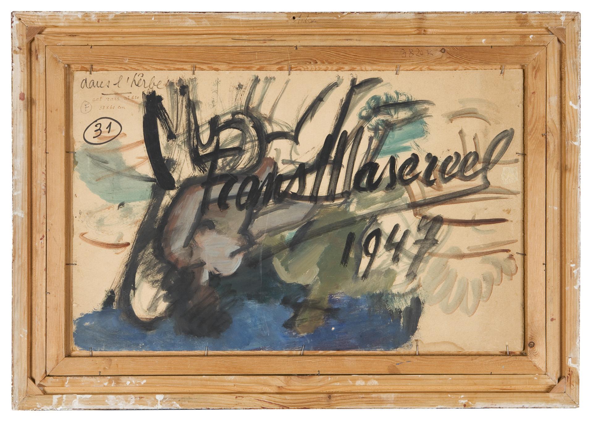 Rückseitig bezeichnet, vom Künstler signiert, datiert: 1947. Profilierter Rahmen mit Silberleisten. Im oberen Eck kleine Risse.