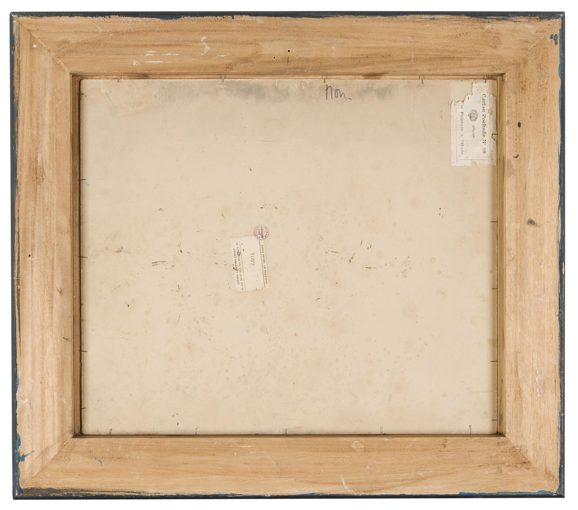 Rückseitig alte Pariser Klebezettel, Stempel. Profilierter Rahmen mit Goldleiste. Gold am Rahmen berieben.