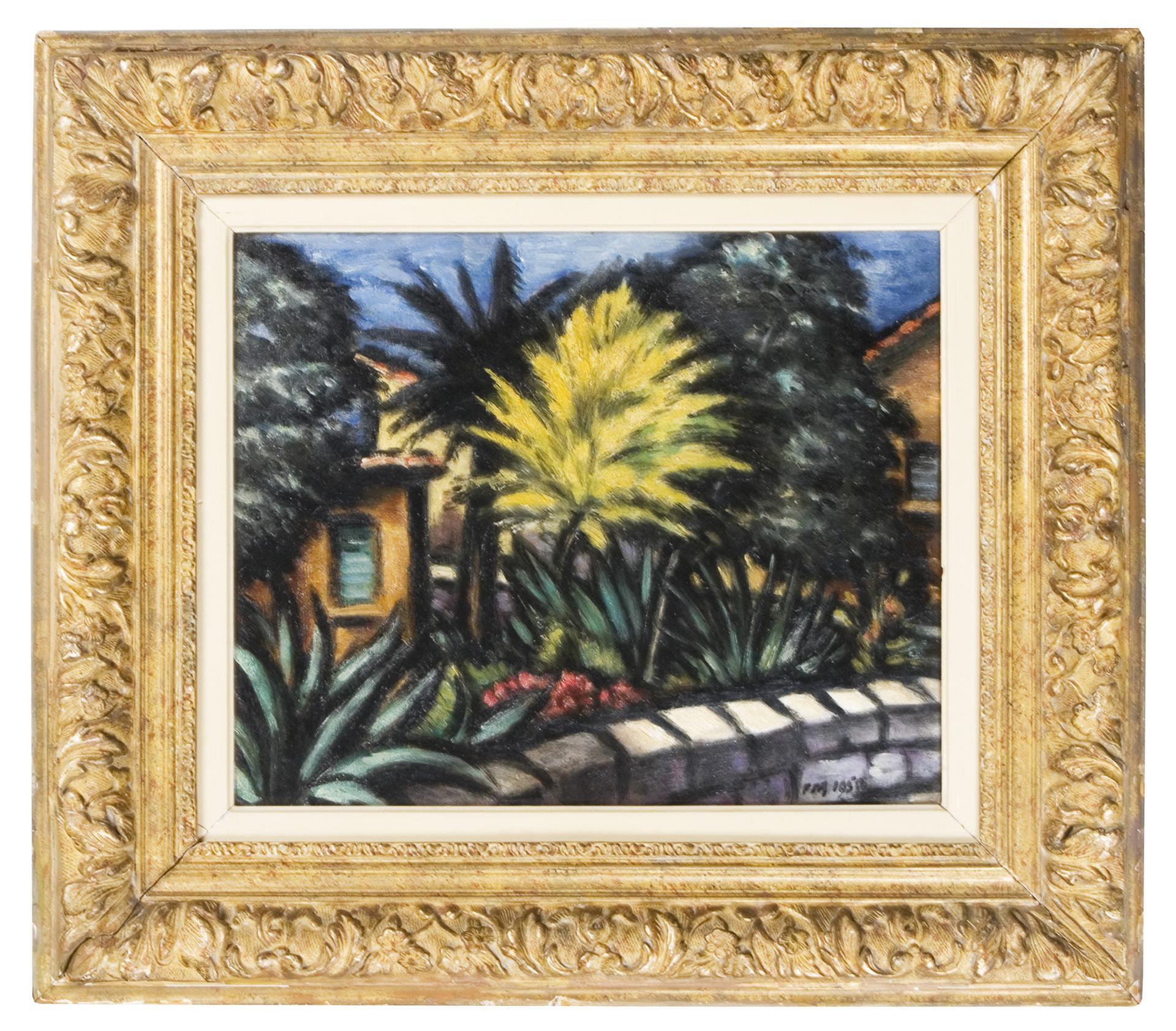 Rückseitig vom Künstler signiert, datiert: 1950. Schwerer vergoldeter Stuckrahmen. Rahmen partiell defekt.