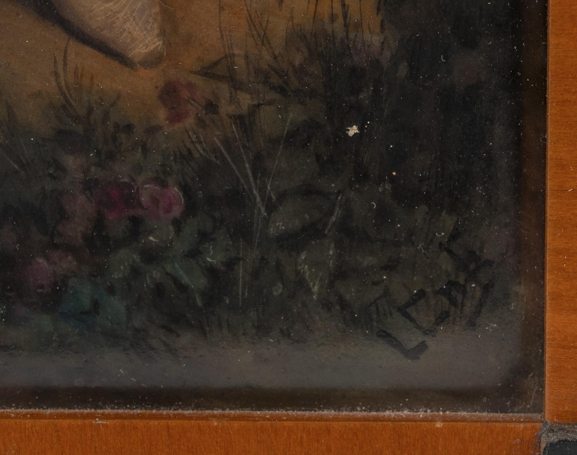 Polychrome Malerei. 30 x 23 cm, im Biedermeier-Holzrahmen (37 x 30 cm).