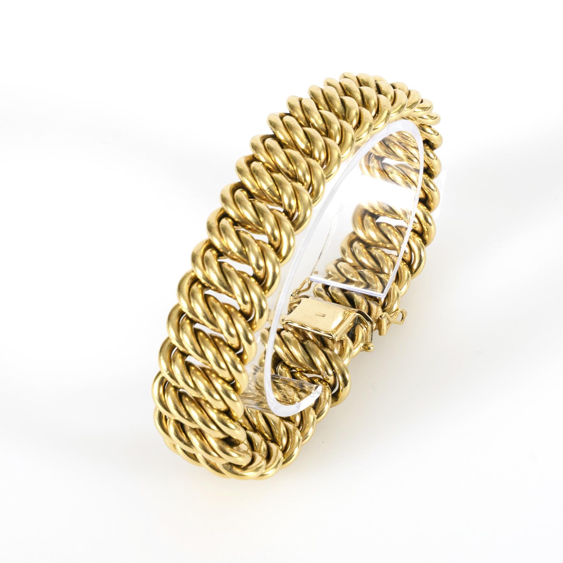 Gelbgold 585 gestempelt. Länge 20,5 cm, Breite 16,11 mm. 40,8 g.