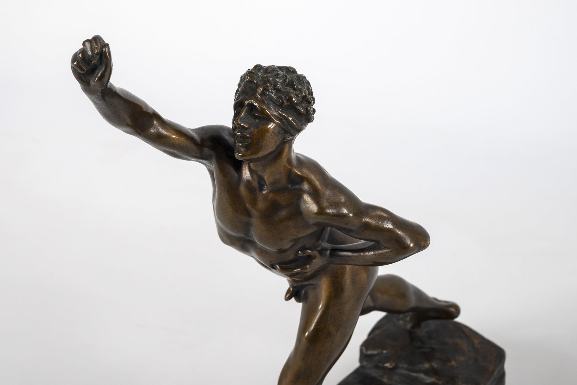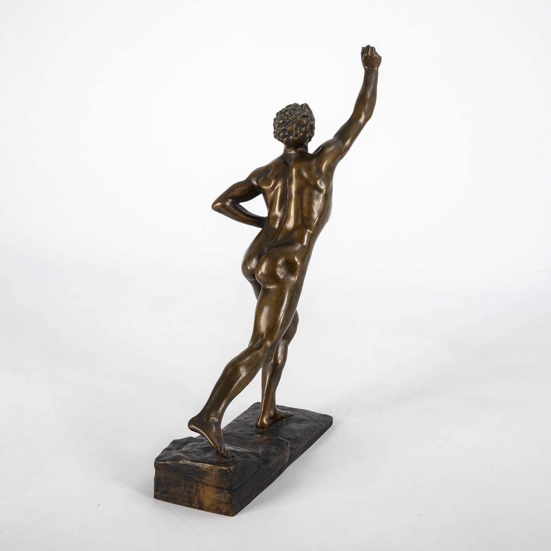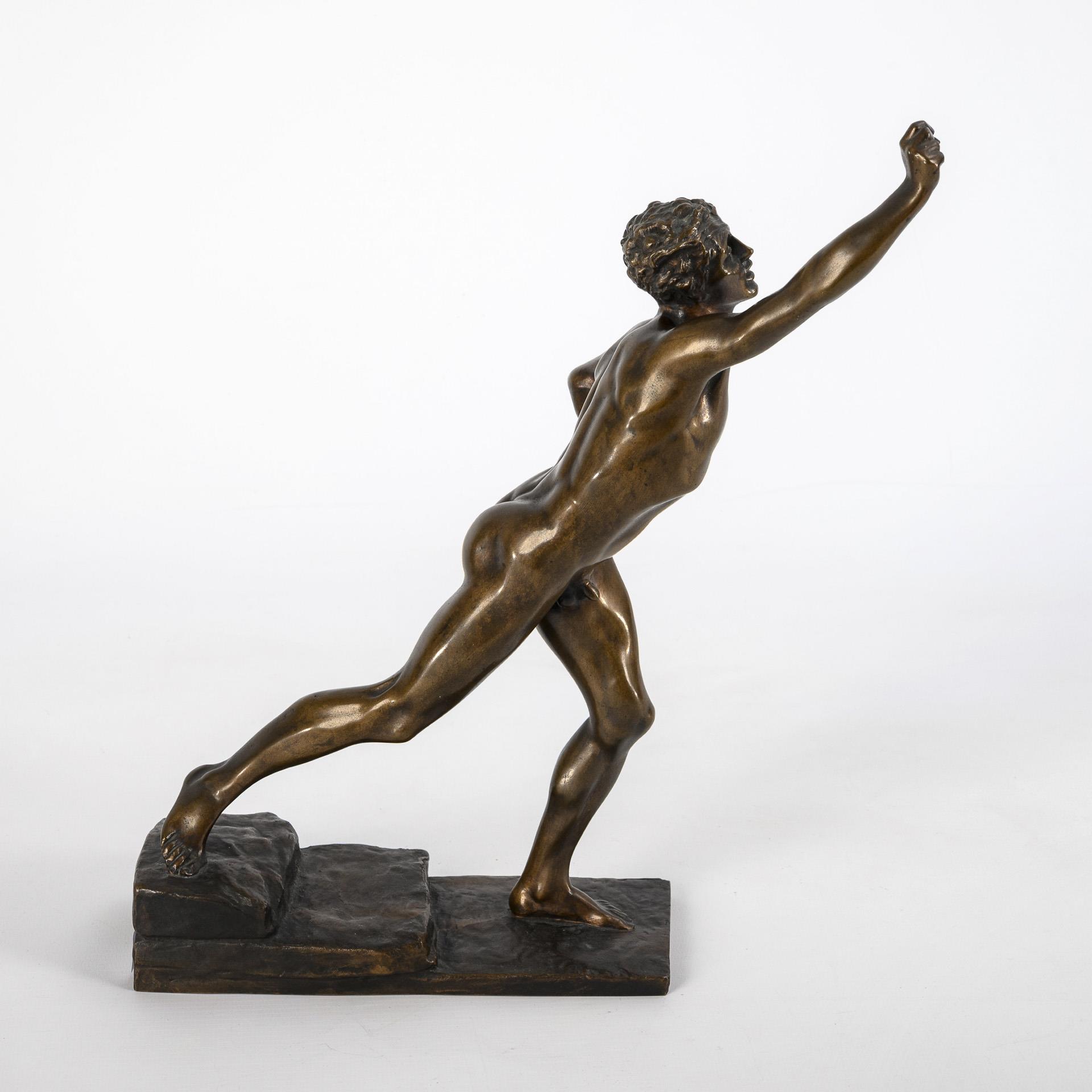 Mit letzter Kraft die Siegesbotschaft von der Schlacht bei Marathon nach Athen bringender nackter Läufer. Lorbeerzweig fehlt.