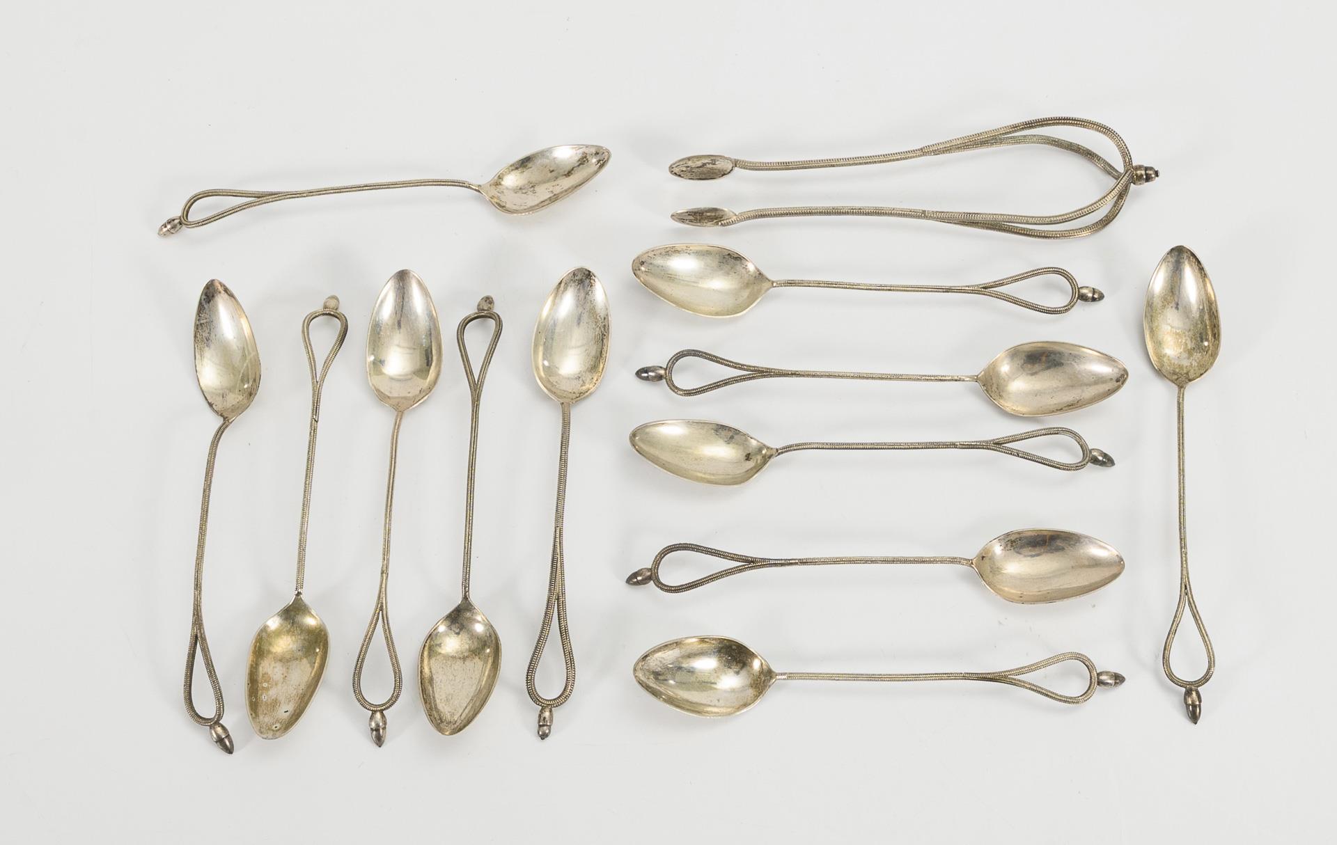 12 Kaffeelöffel + Zuckerzange in Etui.