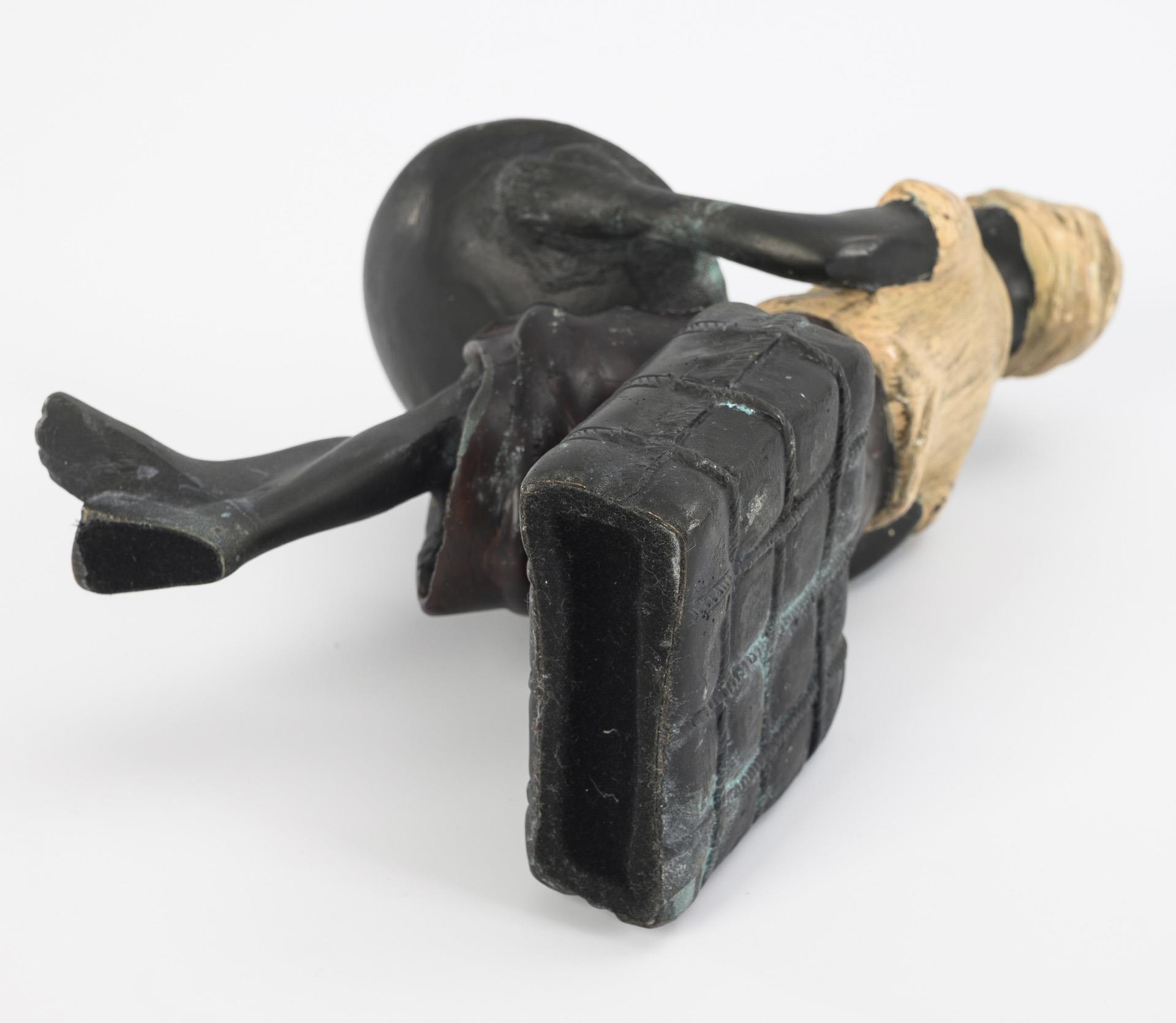 Bronze patiniert, polychrom gefasst. 19 x 7,5 x 12 cm. 1,4 kg.