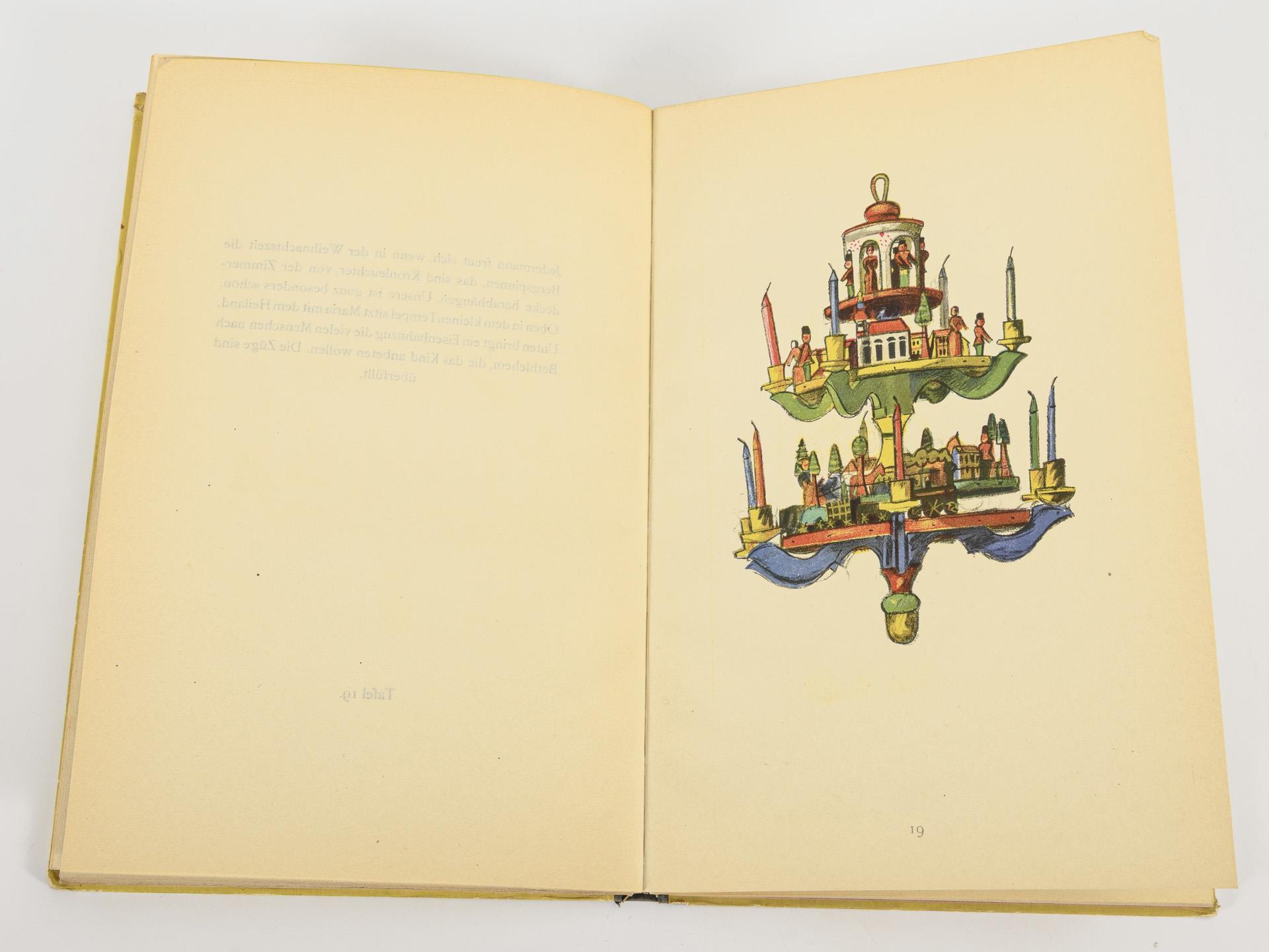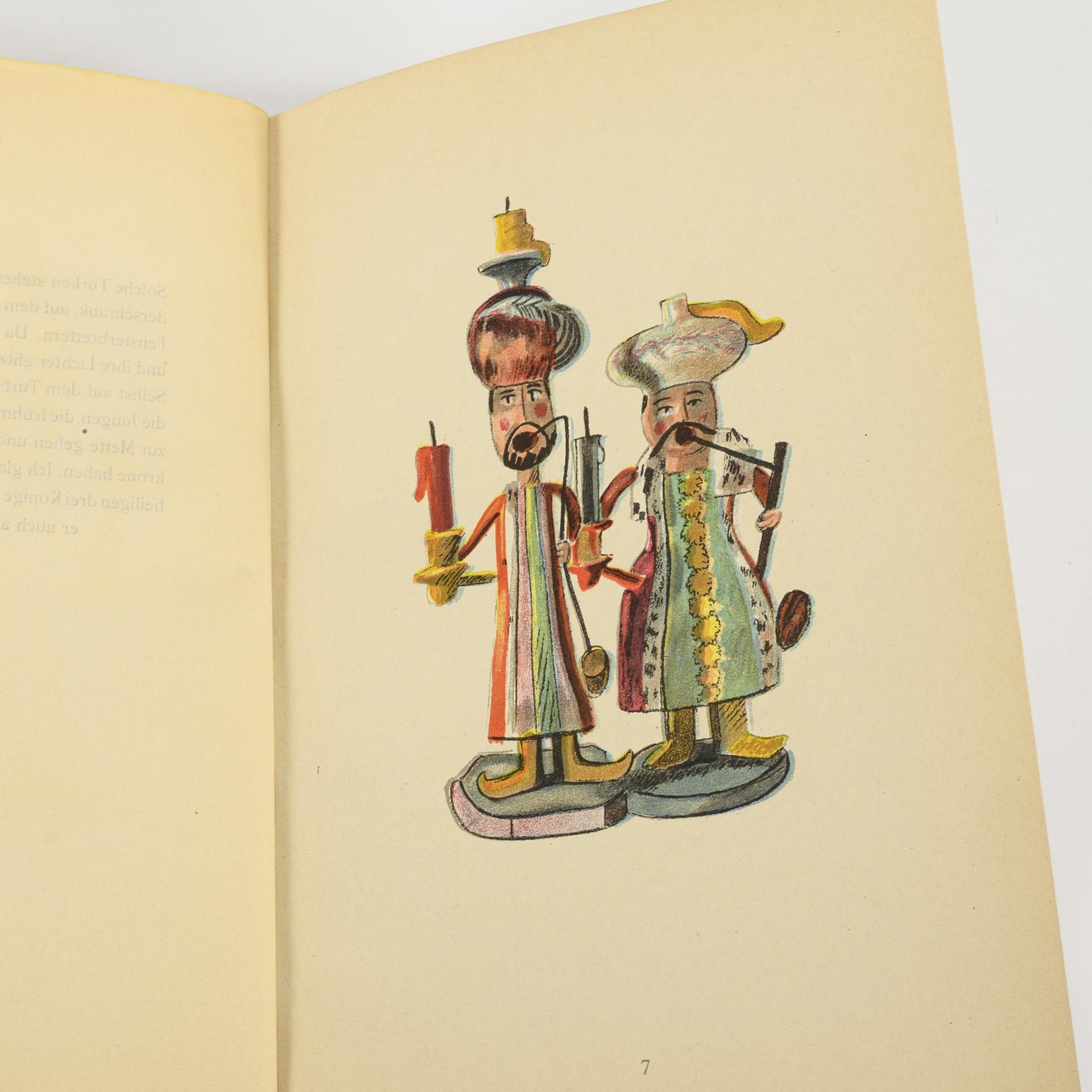 7 Textseiten und 40 farbige Tafeln mit vorwiegend erzgebirgischem Spielzeug und kurzen Erklärungen dazu. Im Halbleineneinband.